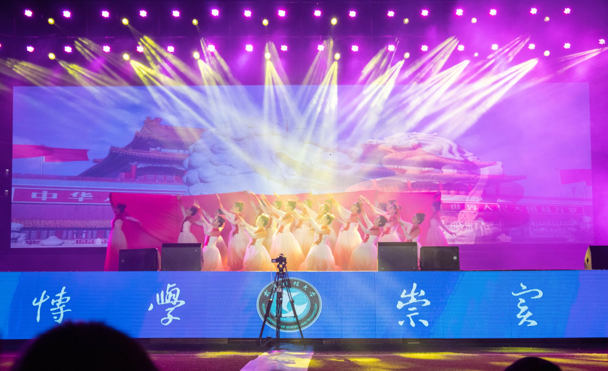庆校庆,也不忘抓住时机用学生喜闻乐见的方式上一堂红色思政课。阿卡贝拉表演《伟大光荣正确的党》,唱出新时代奋进搏击的中华儿女不断谱写的发展新篇;民族舞《花儿为什么这样红》,离退休处的老师用充满激情与力量的表演,让人联想到在党带领下如诗如画的西部;一首《灯火里的中国》,马克思主义学院的师生就用婀娜的舞姿,讲述着对祖国山河的热爱;朗诵《强国有我,逐梦起航》,融媒体中心的学生用昂扬激烈的誓言汇聚出武科大最强之音。