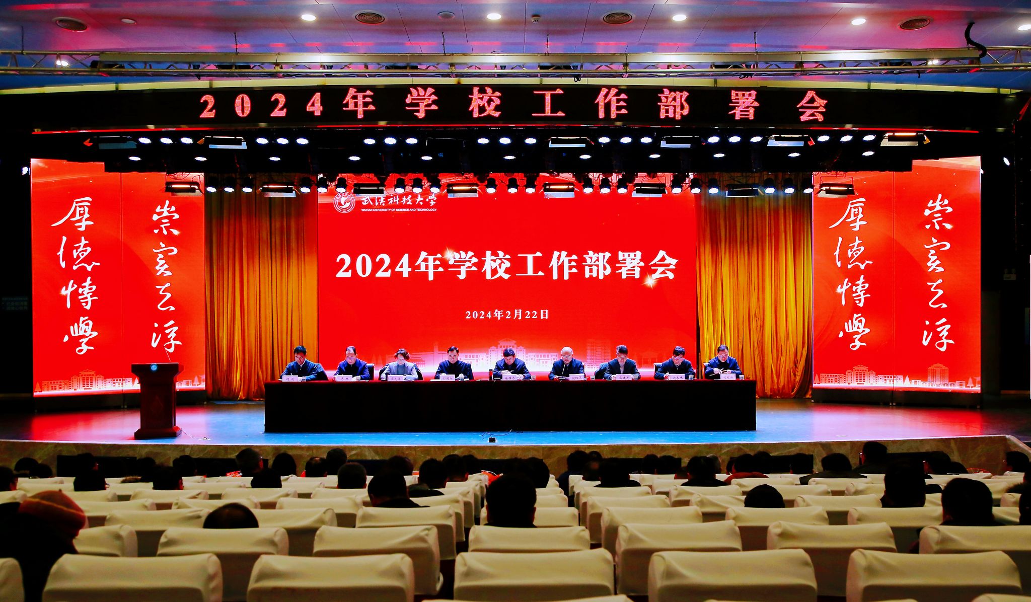武科大网讯 (记者李芳 摄影陈孖川 李芳)2月22日,我校2024年工作部署会在青山校区碧园会堂召开。会上,校党委书记徐雁冰讲话,校长倪红卫部署工作,校党委副书记盛建龙宣读表彰决定。会议由校党委副书记孙国胜主持。