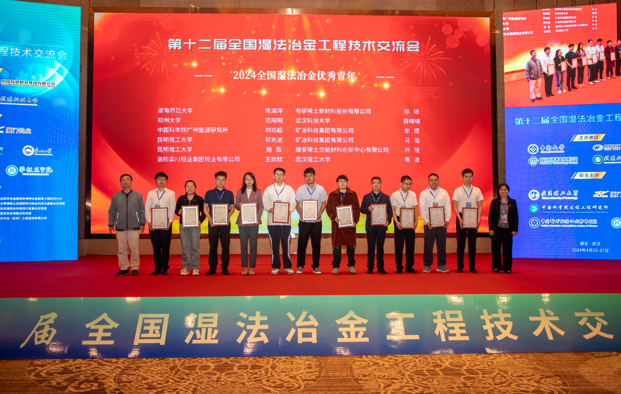 大会举行了“2024 全国湿法冶金优秀人物”“2024 全国湿法冶金星级装备”颁奖仪式。我校薛楠楠教授获“2024全国湿法冶金优秀青年”称号。