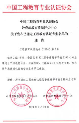 武科大网讯(通讯员 刘波)近日,教育部教育质量评估中心和中国工程教育专业认证协会发布了《关于发布已通过工程教育认证专业名单的通告》(工程教育认证通告〔2024〕第2号)等三个通知,正式公布了2023年工程教育专业认证和中期审核结论。我校矿物加工工程专业完成了申请审核、自评审核、专家组现场考查、结论审议等程序,顺利通过了工程教育认证,有效期6年(2024年1月至2029年12月)。这是我校第4个通过专业认证(评估)复评的专业。同时,我校安全工程专业顺利通过了中期审核,继续保持有效期(2021年1月至2026年12月)。