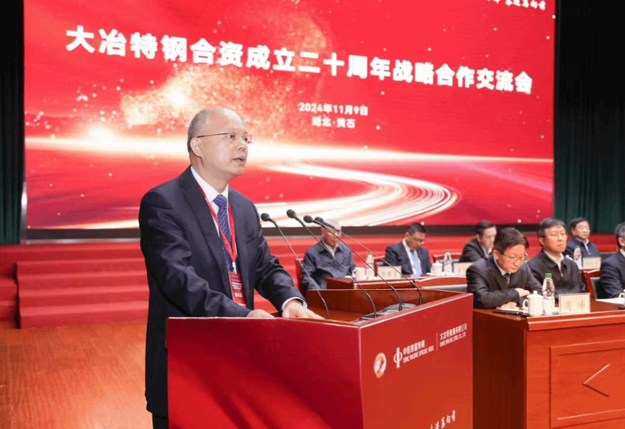 武科大网讯 11月9日,大冶特钢合资成立二十周年战略合作交流会在黄石市举行,校长倪红卫应邀出席活动并作为合作院校代表致辞。