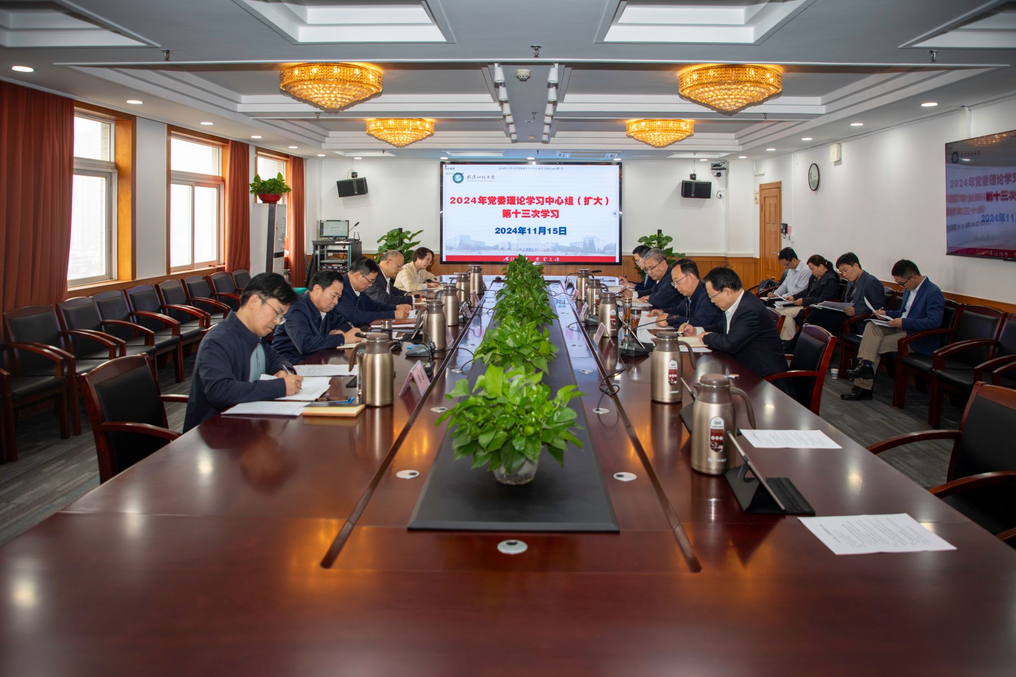 武科大网讯 11月15日,学校在青山校区主楼1610会议室举行2024年党委理论学习中心组(扩大)第十三次学习。党委书记徐雁冰主持学习会议并讲话。党委副书记、校长倪红卫和全体在校校领导参加学习。