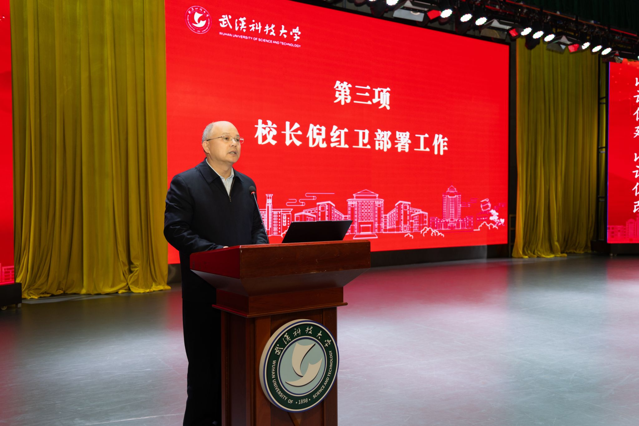 武科大网讯(通讯员邓小龙)3月14日,学校在青山校区碧园会堂召开本科教育教学审核评估迎评工作部署会,对决胜本科教育教学审核评估“攻坚战”再动员、再部署、再鼓劲。党委书记徐雁冰出席会议并讲话,校长倪红卫部署审核评估重点工作,副校长吕勇介绍迎评工作方案。会议由党委副书记孙国胜主持。