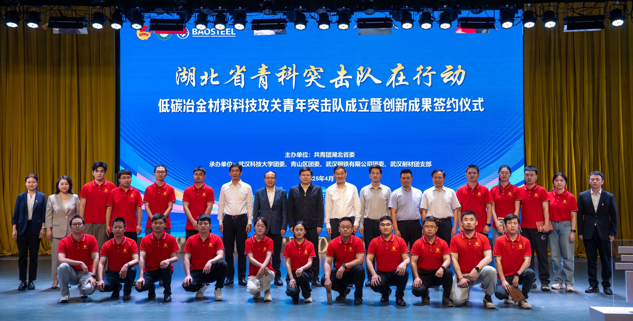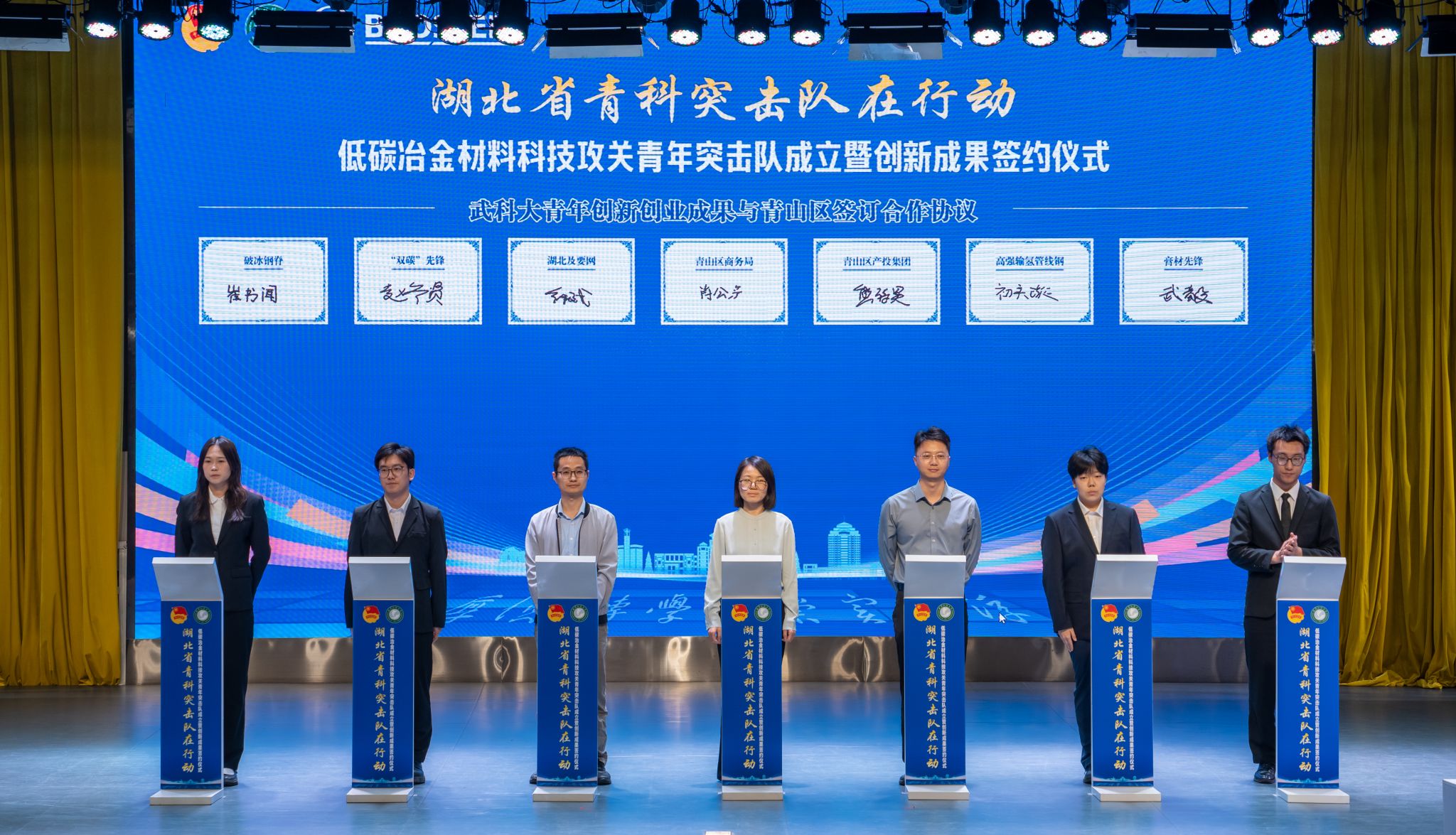 武科大网讯 4月27日下午,学校在青山校区碧园会堂举办湖北省青科突击队在行动——低碳冶金材料科技攻关青年突击队成立暨创新成果签约仪式。共青团湖北省委书记刘治田,武汉市青山区委副书记、区委政法委书记彭勇军,团武汉市委副书记吴海东,宝钢股份党委常委、副总经理,武钢有限公司党委书记、执行董事彭俊,中钢洛耐总经理、武汉耐材公司党委书记、执行董事、总裁左锐,校党委书记徐雁冰出席活动。校党委副书记孙国胜主持。