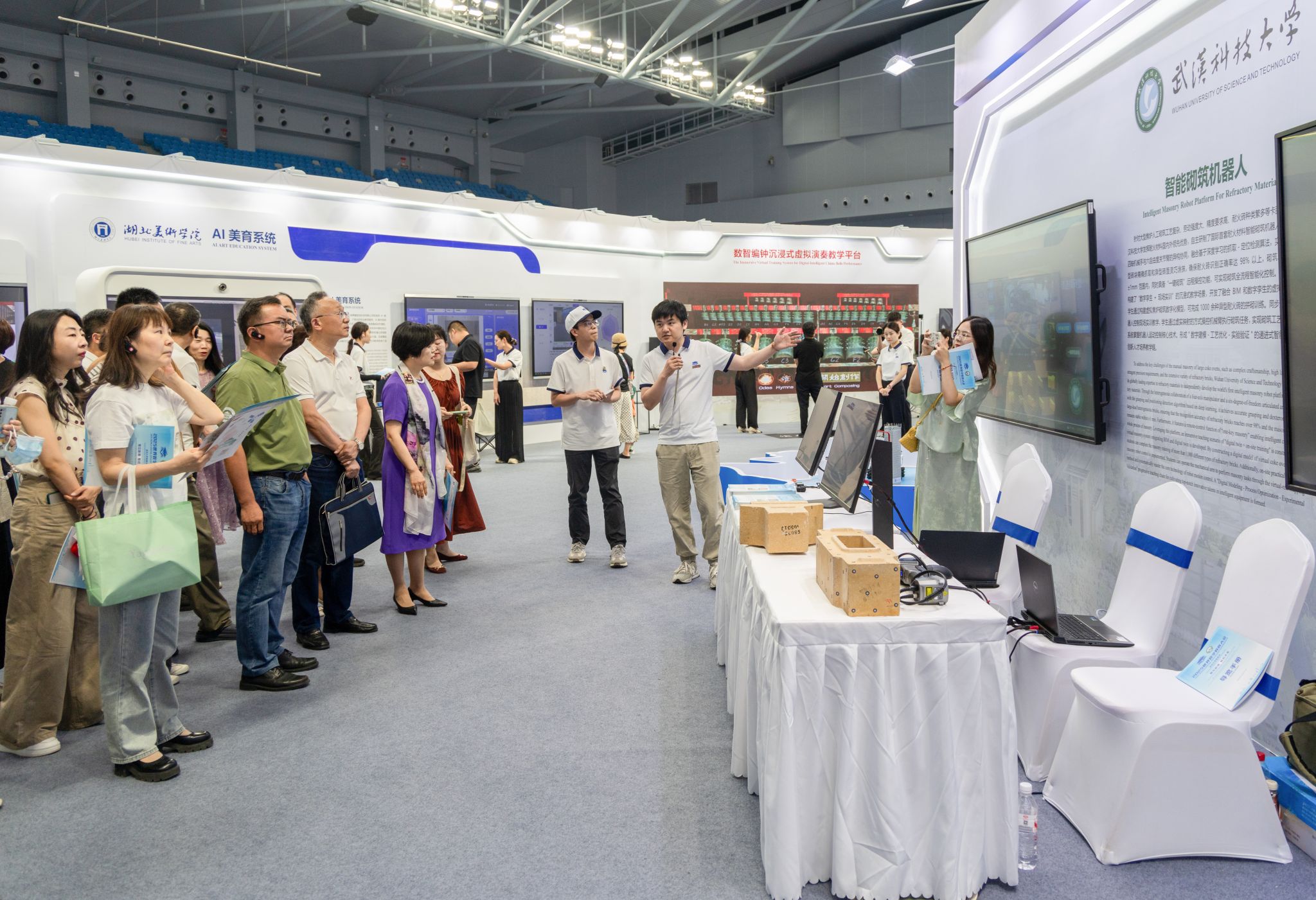 武科大网讯(记者陈孖川)5月14—16日,2025世界数字教育大会在湖北武汉召开,我校机械工程学院研制的“耐火材料智能砌筑机器人平台”亮相湖北高等教育数字化成果展,吸引了来自全球数十个国家和地区嘉宾的关注和点赞。