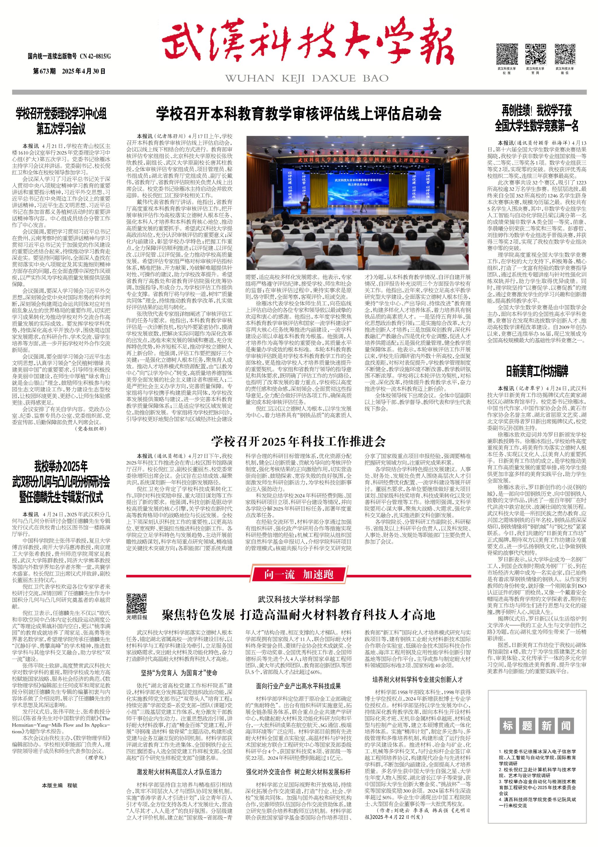 坚持“为党育人 为国育才”使命。依托“湖北省高校党建工作标杆院系”建设,材料学部充分发挥基层党组织政治功能,深化实施教师党支部书记“双带头人”培育工程;持续完善“学部党委—系党支部—团队(课题)党小组”三级基层党建工作体系,充分激发干部教师干事创业内生动力。注重思想政治引领,讲好耐火材料故事,打造“精金百炼”党建工程,开展“寻钢魂 造材料 做脊梁”主题活动,构建形成党建与业务互融互促的协同机制。材料学部获评湖北省教育工作先进集体、全国钢铁行业五四红旗团委;入选全国党建工作样板支部、全国高校“百个研究生样板党支部”创建名单。
