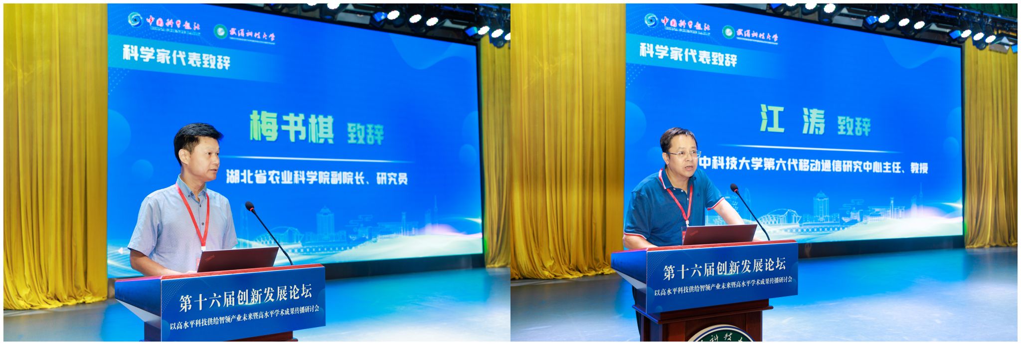 中国科学院院士、华中农业大学教授张启发,中国科学报社编委会主任、原党委书记刘峰松,湖北省科协党组成员、秘书长马贵兵,湖北省农科院副院长梅书棋,我校校长倪红卫、党委副书记孙国胜、副校长董丽杰等出席会议。