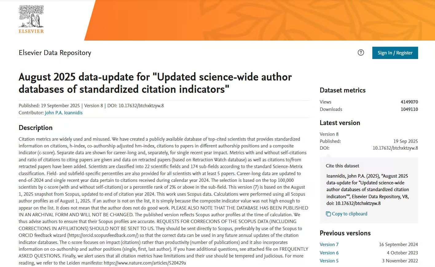 据悉,2025年榜单通过论文引用数、h因子、合著者修正的hm因子、单独或第一作者的文章引用数等综合参数,从全球近700万名科学家中,遴选出世界排名前2%的科学家,涵盖22个领域和174个子领域,共有超600所中国内地高校有学者入选。“终身科学影响力”榜单统计科学家职业生涯期间的综合表现,“年度科学影响力”榜单聚焦上一年度的学术影响力,能够更客观、更真实地反映科学家的学术号召力。