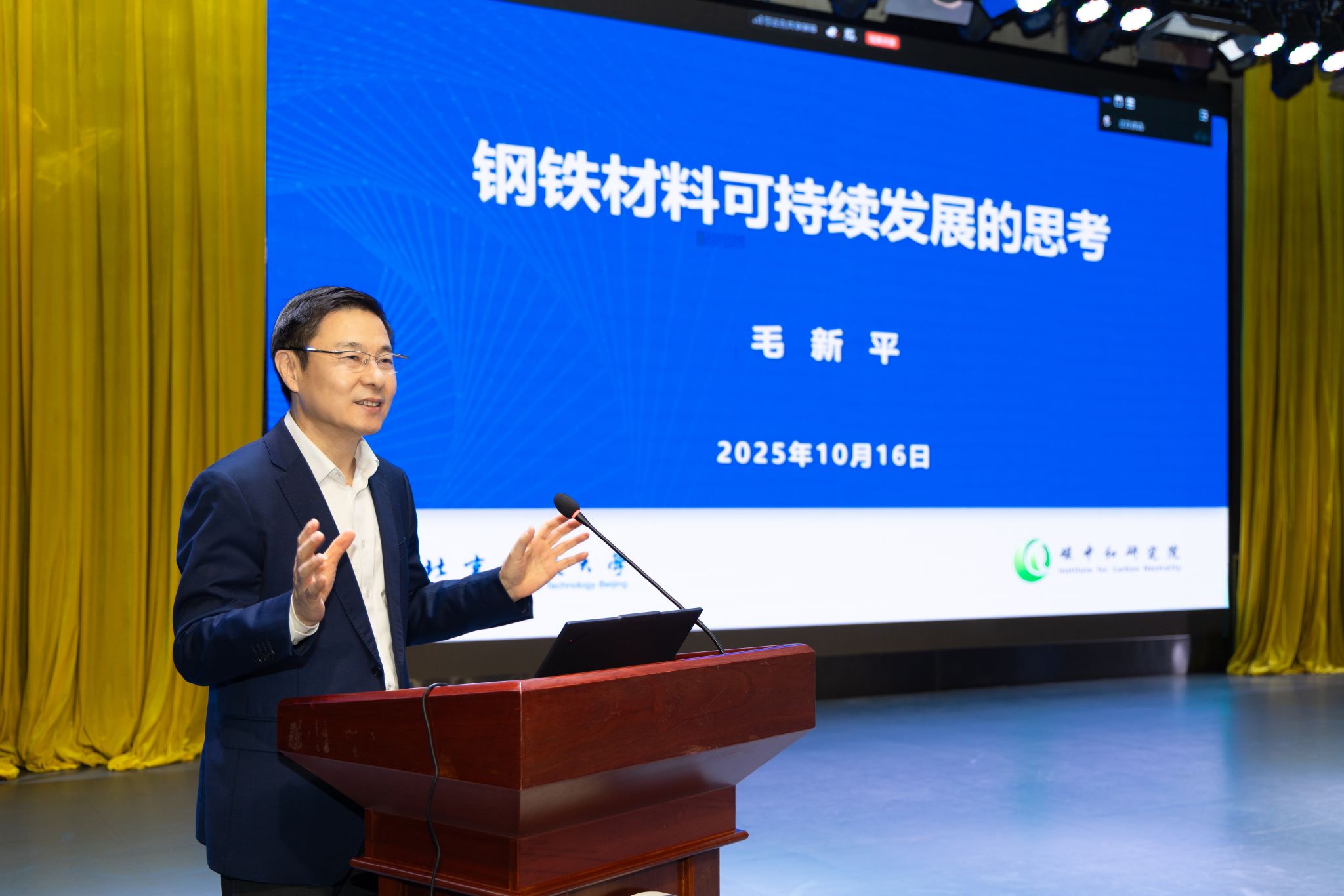 大会报告环节,毛新平院士作题为《钢铁材料可持续发展的思考》的首场报告。他深刻剖析了当前国际形势下钢铁行业面临的挑战与机遇,明确指出钢铁工业是实现“双碳”目标的关键领域,必须从结构、技术、材料三个层面系统性推进绿色转型。报告中,他重点阐述了残余元素控制、智能化模型构建等前沿方向,并特别指出了以人工智能赋能材料研发的前瞻性路径,为大模型与智能体技术在可持续钢铁材料中的应用描绘了新的可能。