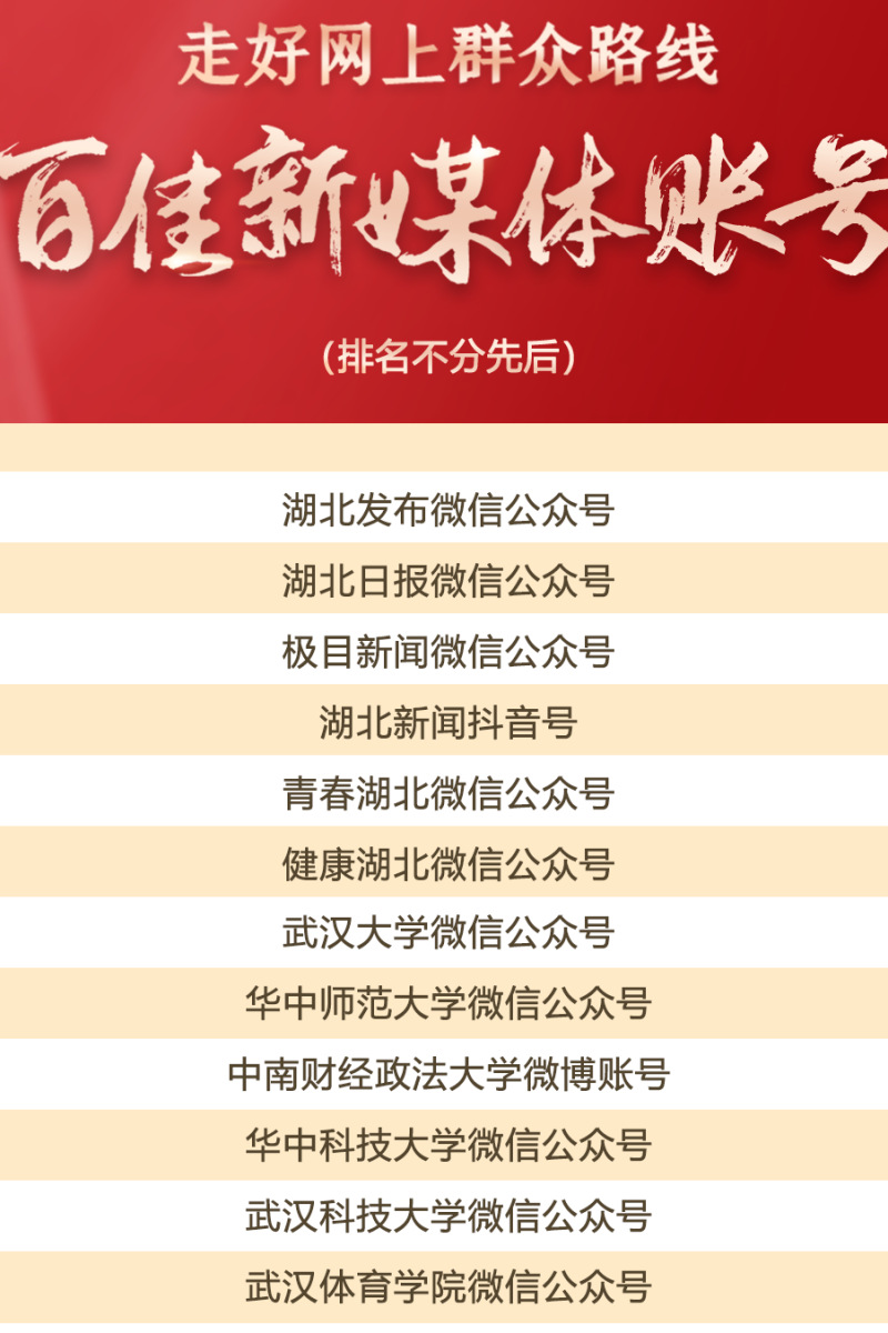 今年6月,为深入落实省委“下基层、察民情、解民忧、暖民心”活动要求,畅通网路渠道,引导和推动运用新媒体进一步走好网上群众路线,湖北省委网信办启动了走好网上群众路线“百佳新媒体账号”推选活动。经自愿申报、组织推荐、账号初审、网上投票、专家复评、会议审定等程序,推选出了100个优秀新媒体账号,湖北省仅有武汉大学、华中科技大学等4所部属学校和国产亚洲精品久久久久久久_无码AV免费精品一区二区三区_99久久久无码国产精品免费人妻_精品人妻无码一区二区三区在线_无码专区久久综合久综合字幕_久久精品国产一区二区三区四区_真实一级一级一片免费视频_特级精品毛片免费观看_国产成人无码AA片免费看、武汉体育学院2所省属高校上榜。
