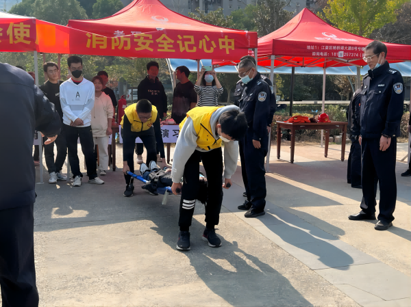武科大网讯(通讯员孙宁 摄影张俊杰)11月9日12时,我校保卫处在黄家湖校区南苑餐厅门前广场组织开展了“消防器材会使用 消防安全记心中”主题宣传活动。保卫处消防科段晓栋等5名老师现场为同学们介绍常见的消防器材及使用方法和使用场景,并在学生安全自治委员会的学生干部全员配合下进行了部分器材的使用演示。