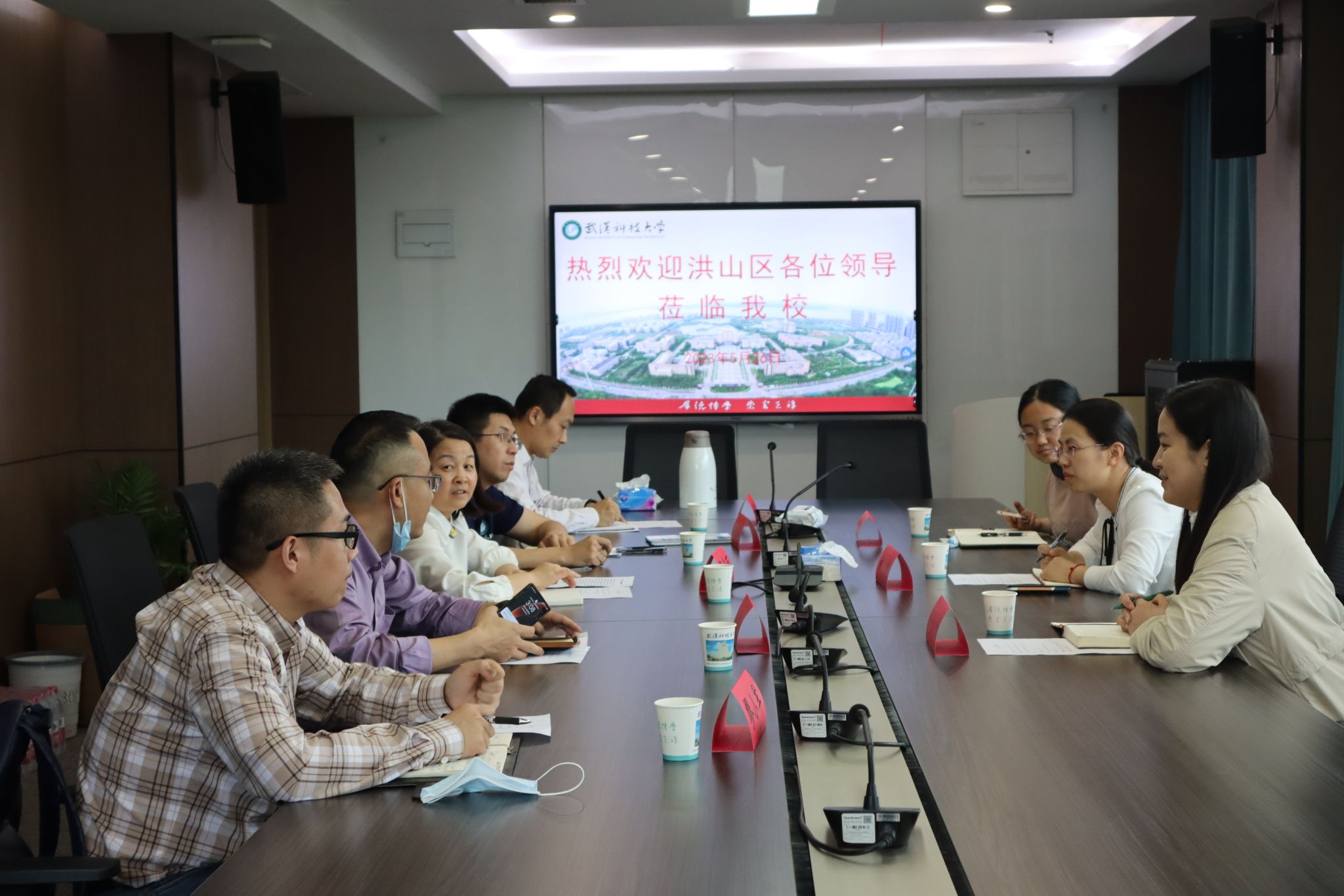 会上,双方进行了细致深入的交流与讨论。会后,洪山区大学之城建设服务办公室一行参观了我校创新创业学院。