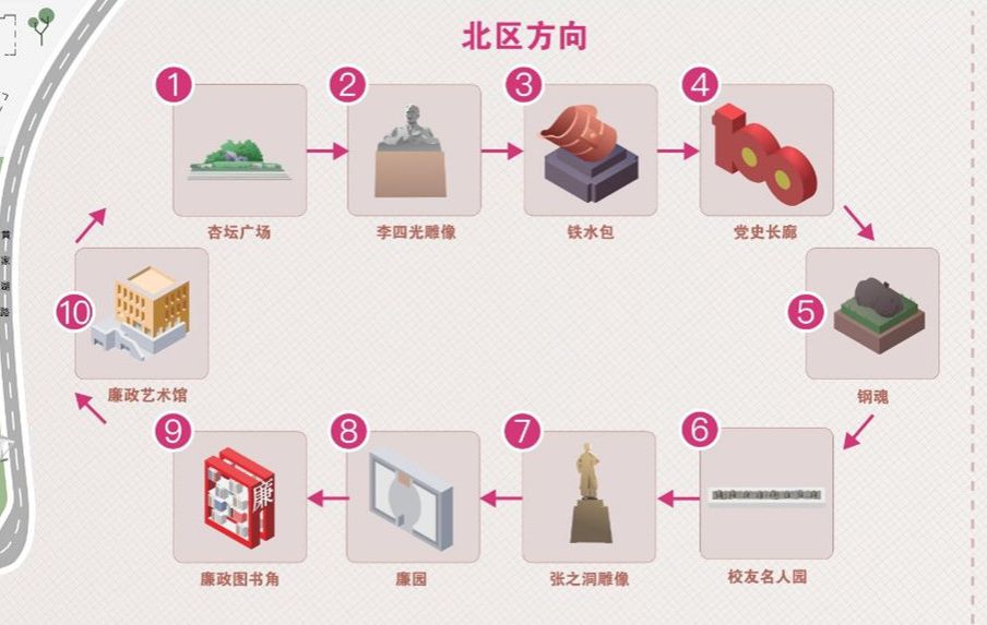武科大“清廉之旅”是我校立足校园红色文化资源,精心打造的廉洁教育品牌,由校园里的杏坛广场、李四光雕像、铁水包、党史长廊、钢魂、校友名人园、张之洞雕像、廉园、廉政图书角、廉政艺术馆10个景点组成,全景式展现新时代清廉文化的内涵。