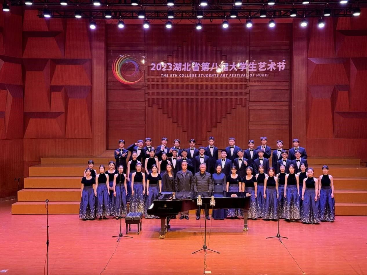 从10月底报送大艺节省赛录像到12月底国赛录像,沁湖之声的老师和成员们一刻也没有松懈,并在这段经历中收获颇丰。在12月初举办的湖北省大学生艺术节展演开幕式上,沁湖之声bravo人声乐团演唱了一首纯人声合唱曲目《A Million Dreams》,让人记忆深刻,并得到了开幕式导演的高度肯定。正式展演舞台上,沁湖之声合唱团以及bravo人声乐团一共呈现了三场精彩绝伦的演出,收获了现场观众的热烈掌声。