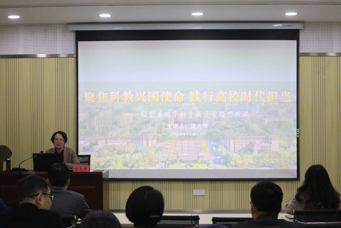 武科大网讯(通讯员丁虹 姜超)12月7日下午,我校党委常委、纪委书记窦先萍在黄家湖校区教四楼42305报告厅,为外国语学院师生讲授了主题为“聚焦科教兴国使命,践行高校时代担当”的专题思政课。外国语学院领导班子成员、各党支部书记及委员、师生党员代表参加本次学习。外国语学院党委书记苏芳勇主持。