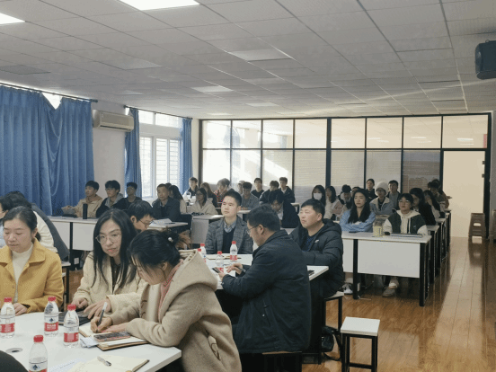 城建学院领导班子成员、系党支部书记、系主任、研究所所长、学生党员代表共60余人参加。(城建学院)