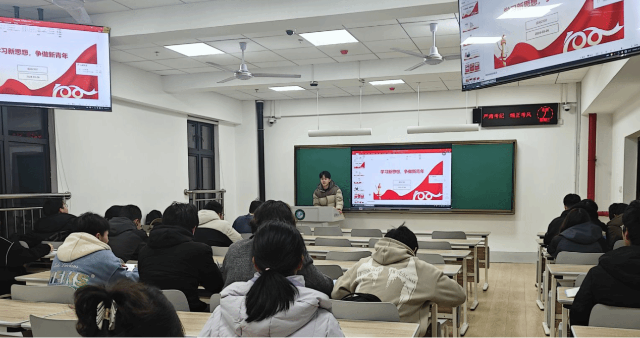 全校各班级以“学习新思想,做好接班人”为主题召开班会,引导学生分享自己的寒假社会实践经历、分享寒假见闻纪实以及播放vlog视频,让学生在主动把握社会实践课程的经历中立志成才。此外,邀请创新创业学院相关老师以主题报告交流的形式,助力学生在新学期做好学业规划、职业规划。健全朋辈交流体制机制,在“一站式”学生社区组织“朋辈茶话会”,退伍大学生、国奖获得者、社会实践先进个人等优秀学生走向讲台,分享将“小我”成长融入“大我”奋斗之中的先进事迹,鼓舞带动青年朋辈。