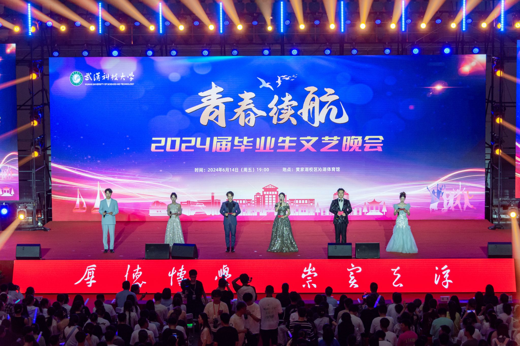 武科大网讯(通讯员肖宇瑄 记者朱佳怡 摄影吴磊 李周阳)6 月 14 日晚,我校 2024 届毕业生文艺晚会在黄家湖校区沁湖体育馆盛大举行。本次晚会以“青春续航”为主题,分为“忆往昔——缘聚科大”“看今朝——风华正茂”“展未来——共筑梦想”三个篇章,为即将毕业的学子们送上了一场精彩纷呈的视听盛宴。校党委副书记孙国胜、学校相关职能部门负责人、各学院党委副书记、毕业年级辅导员、毕业生和毕业生家长共同出席了本次活动。
