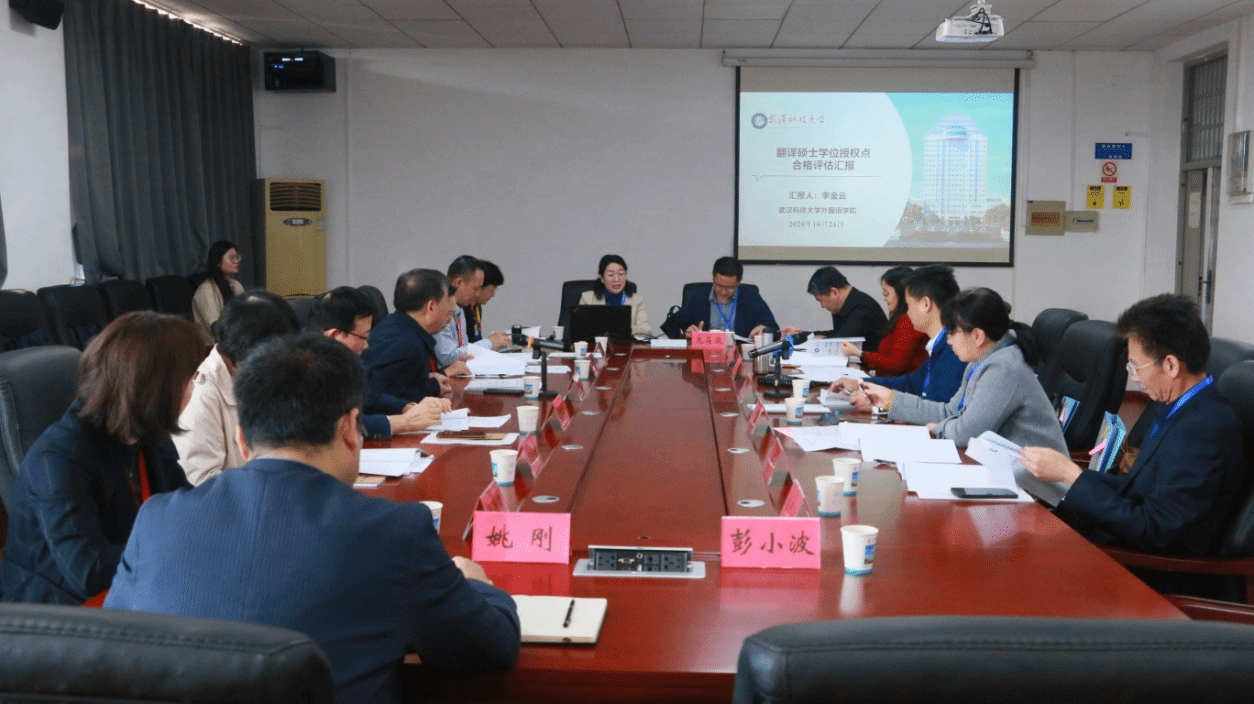 武科大网讯(通讯员姚刚) 10月24日上午,外国语言文学硕士、翻译专业硕士(MTI)两个学位授权点周期性合格评估专家组莅临我校开展评估工作。教育部全国翻译专业学位研究生教育指导委员会委员、对外经济贸易大学英语学院院长向明友教授任组长,成员包括全国翻译专业学位研究生教育指导委员会委员、《中国翻译》期刊主编杨平教授,教育部高等学校外语教学指导委员会英语专业教学指导分委员会委员、华中科技大学外国语学院院长许明武教授,教育部高等学校外语教学指导委员会英语专业教学指导分委员会委员、华中师范大学外国语学院院长罗良功教授,对外经济贸易大学江进林教授,传神语联网网络科技股份有限公司闫栗丽副总裁,武汉环洋文化有限公司余潇琪董事长等7位专家。我校党委常委、副校长马腾会见了专家组,研究生院院长程常桂、研究生院副院长刘斌、外国语学院全体领导班子成员及学位点相关教师代表参加了评估会。