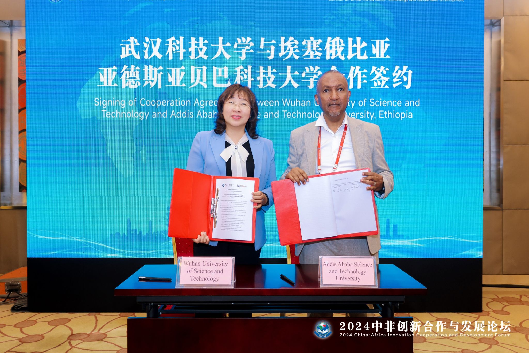 我校副校长董丽杰致开幕辞,并代表学校与埃塞俄比亚亚德斯亚贝巴科技大学签订合作协议。