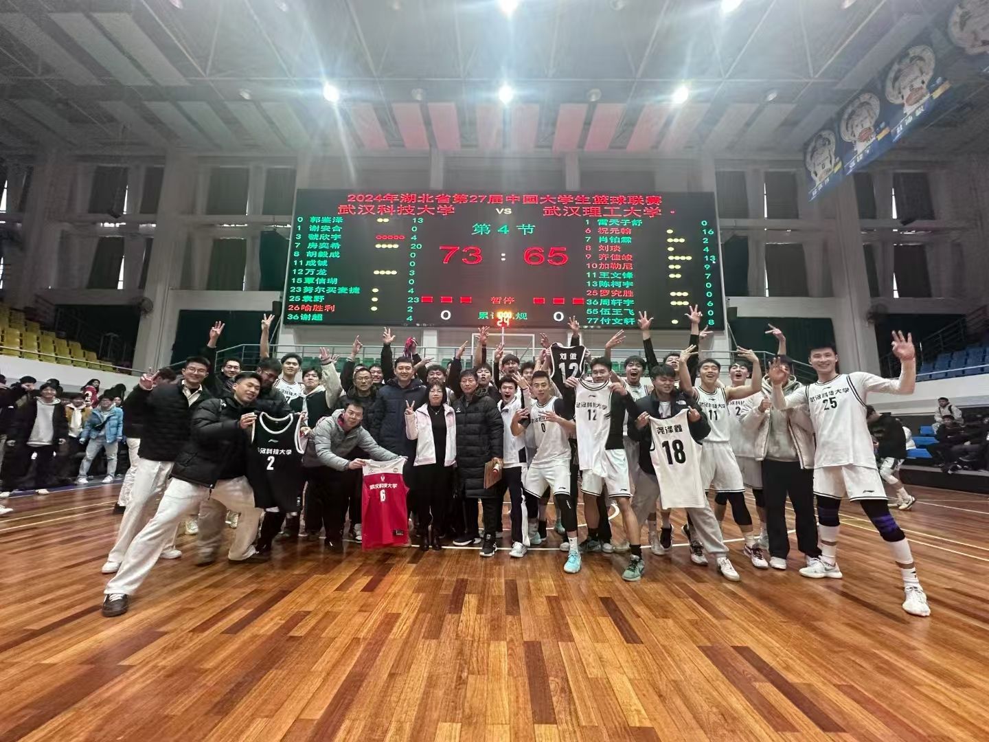 在与武汉理工大学队的冠亚军争夺中,我校队员在王小安老师的战术布置下,展开出色的协同防守和合理有效的进攻,凭借过硬的心理素质和扎实的基本功,在关键时刻把握住机会,确立了胜势,最终以73:65获得冠军。这是我校男篮第三次夺冠,成为湖北省唯一的三连冠队伍。