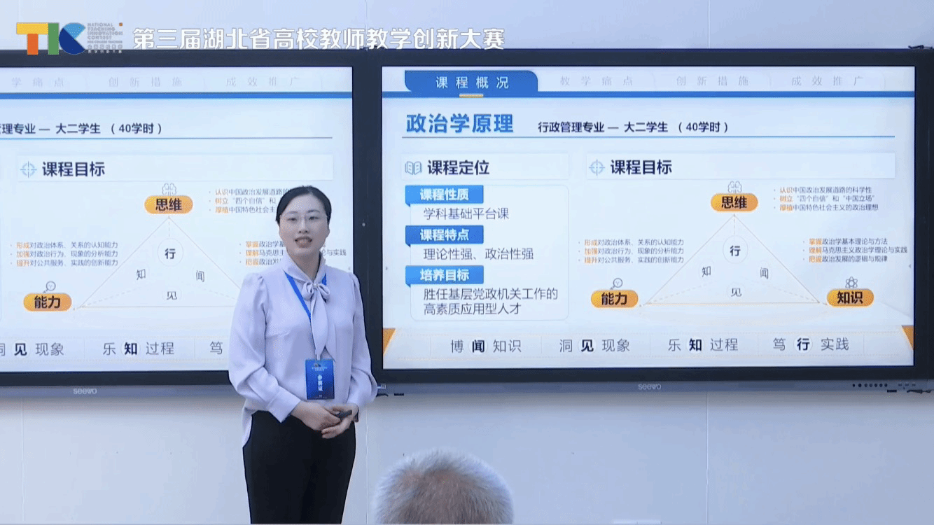 “通过学院组织的专题培训,我的课程设计实现了从知识灌输到能力培养的转变。”行政管理专业闫明明老师表示。这位连续斩获湖北省教学创新大赛三等奖、校青教赛一等奖的青年教师,在学院支持下,持续优化学情反馈机制,将社会需求与学生兴趣融入课程设计,创新开发“案例驱动+角色模拟”的教学体系。