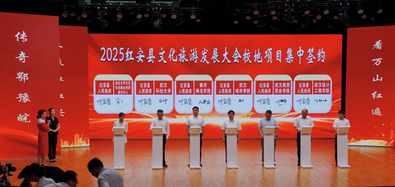 武科大网讯(通讯员罗杰妮 赵士添 周以恒)5月20日,2025红安县旅游发展大会暨校地共建大别山文化旅游创新研究院揭牌仪式在红安革命老区隆重举行。我校科学技术发展院副院长任帅一行出席活动,与红安县人民政府签署战略合作协议,标志着双方在红色文旅融合发展、政产学研用协同创新领域迈入新阶段。