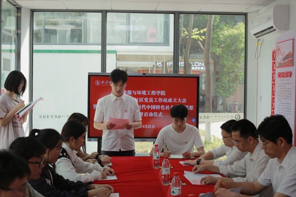 4月21日下午三点,资源与环境工程学院在北苑“一站式”学生社区举行了党员工作站成立大会暨学习贯彻习近平新时代中国特色社会主义思想主题教育活动,校党委学生工作部部长许立桥、资源与环境工程学院党委书记曹伟、资源与环境工程学院院长刘涛、矿物加工工程系教工党支部书记张明党委秘书、入驻辅导员、学生党员代表参加活动。资源与环境工程学院党委副书记张瑞主持活动。(江子琪)