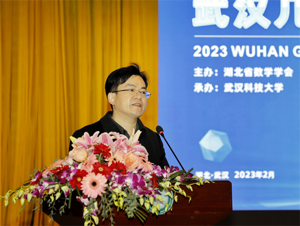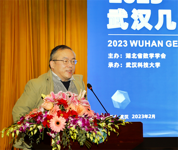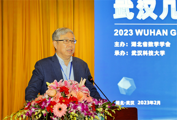 湖北省暨武汉数学学会理事长陈化致辞。他谈到了数学学科人才培养的特点及难点,鼓励各大高校重视基础学科,加强数学人才引进的力度,创造更多交流机会,培养出更多优秀的专业人才。