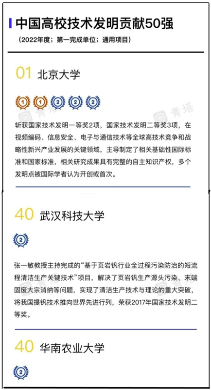 武科大网讯(记者李芳)7月8日,青塔2022年度中国高校技术发明贡献50强重磅出炉,我校位列全国高校第40名,居湖北省属高校第一,是湖北省省属高校唯一入围学校。