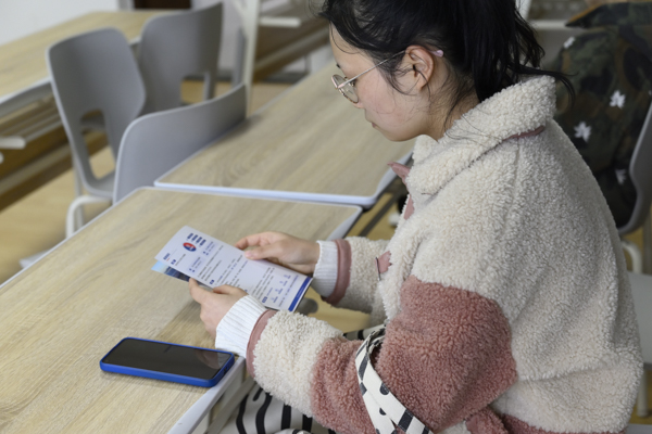阅读传单的学生 熊雄摄