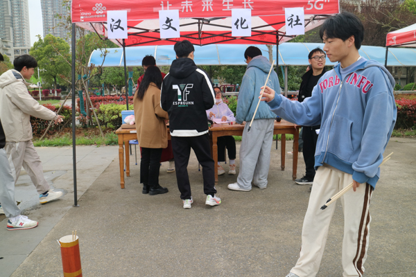 为提高在校师生的文化素养和审美修养,培养广大学生艺术兴趣和爱好,促进师生共同感受传统文化之美,3月25日,我校懿行国学社、潇湘雨诗词协会、笛箫艺术协会、书画艺术协会、摘星棋社、汉文化社、红楼梦协会、图书馆读者协会等八个传统文化社团于南园食堂前,开展了2023年度八协文化周活动。(金如梦 熊雄)
