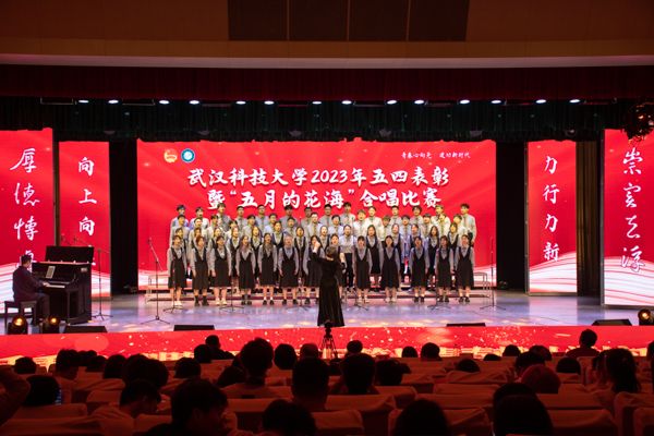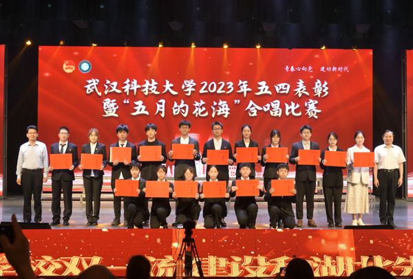 5月4日晚,我校于黄家湖校区沁湖礼堂举办2023年度五四表彰暨“五月的花海”合唱比赛,全体在校校领导出席活动并为“优秀共青团员”“模范共青团干部”“五四红旗团支部”“十大魅力学子”“五四红旗团委”颁奖。获奖个人代表袁鑫和获奖集体代表章健宇发言。“五月的花海”合唱比赛由17支队伍进行演唱,最终材料与冶金学院和管理学院获得一等奖。(王政全 熊雄)