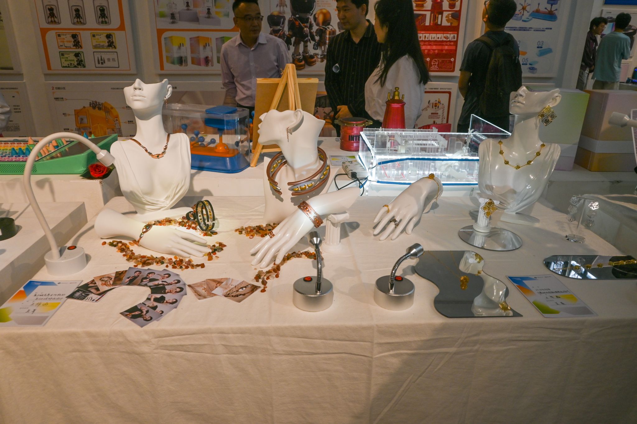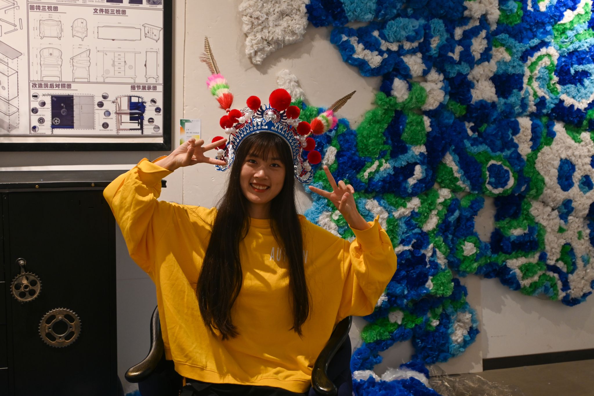 学生给参观者介绍作品《时空孪生 触媒生长》 黄宏杰摄