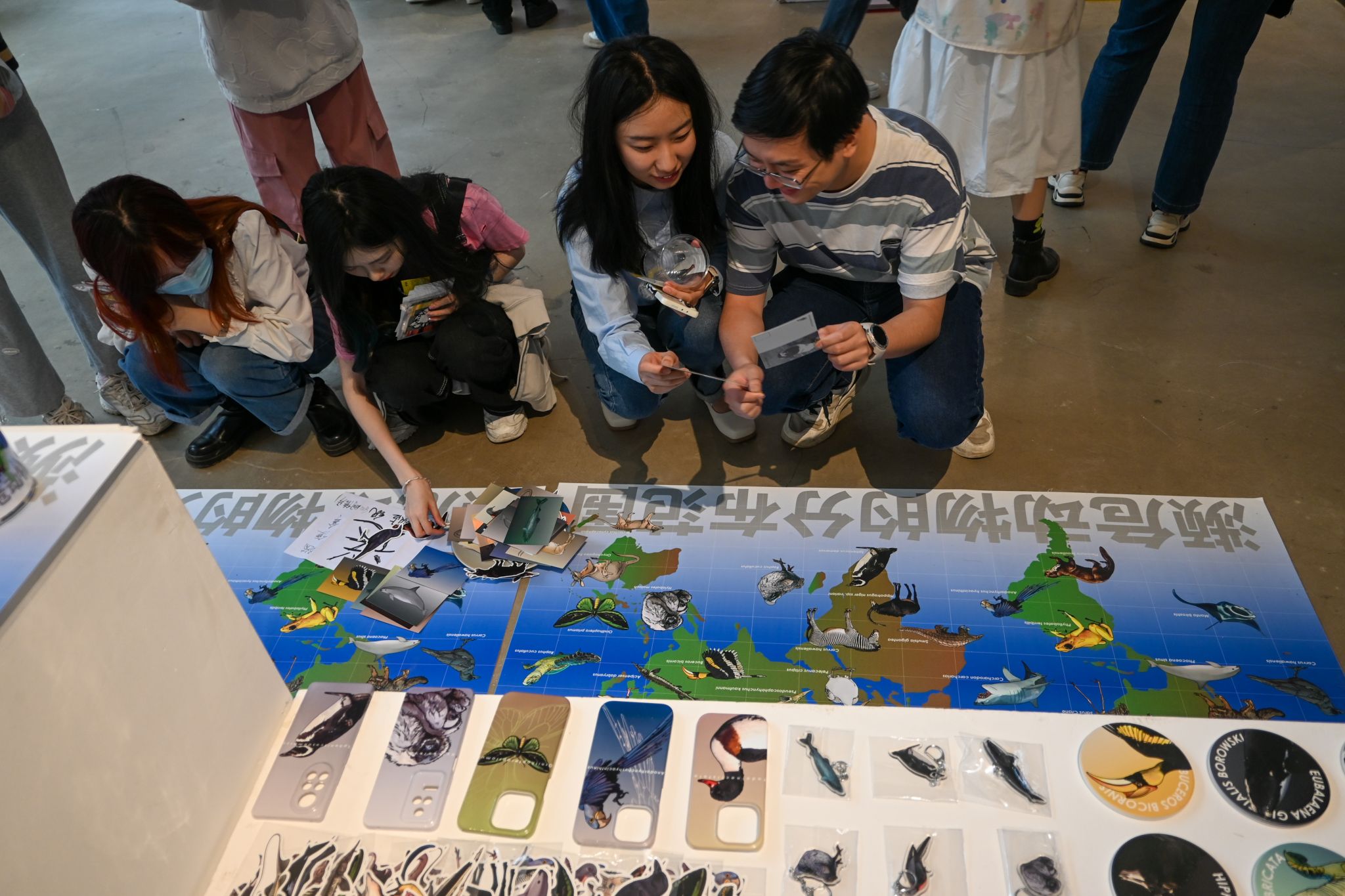 学生给观众讲解作品《植物”访客“》 黄宏杰摄