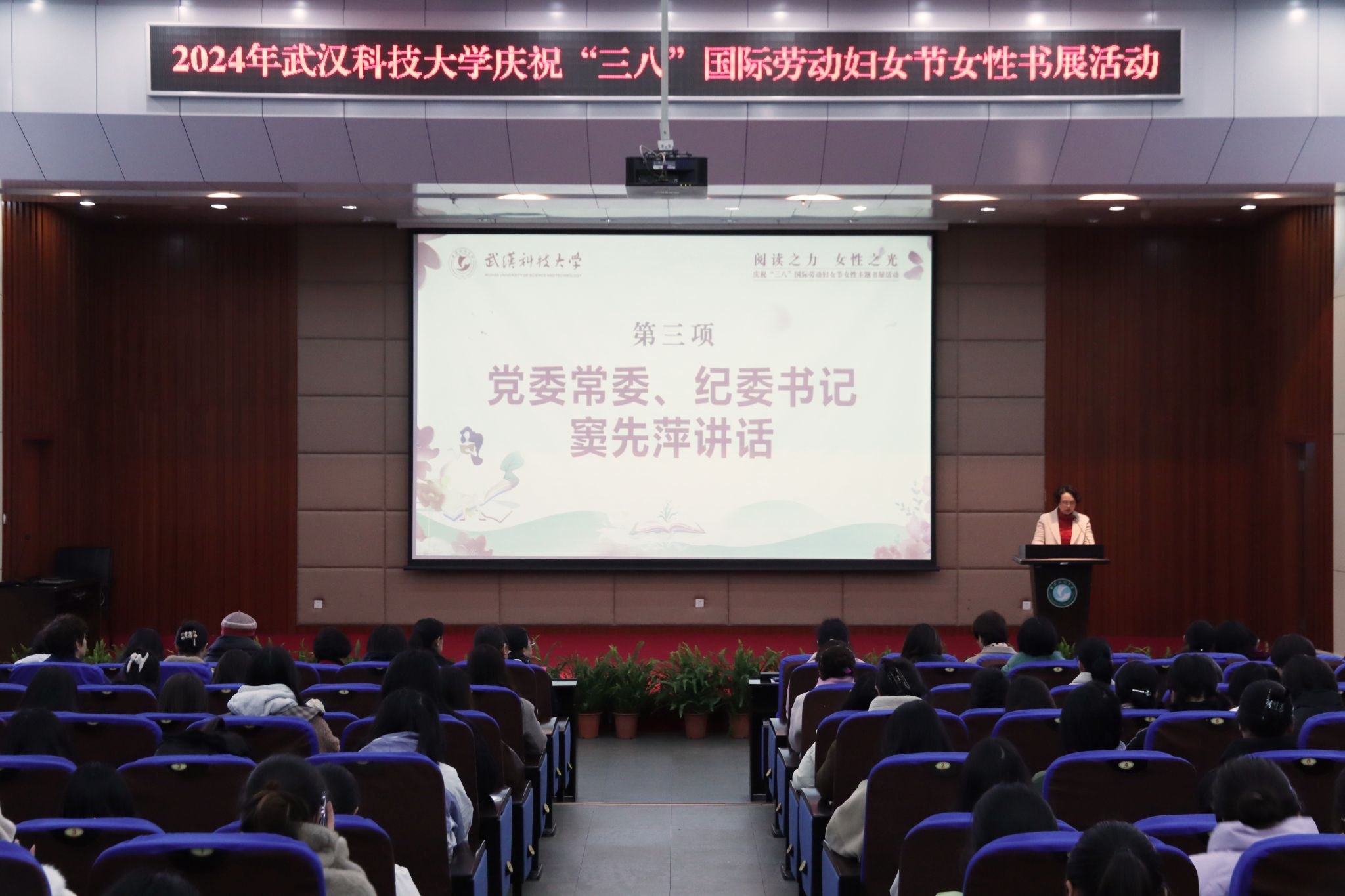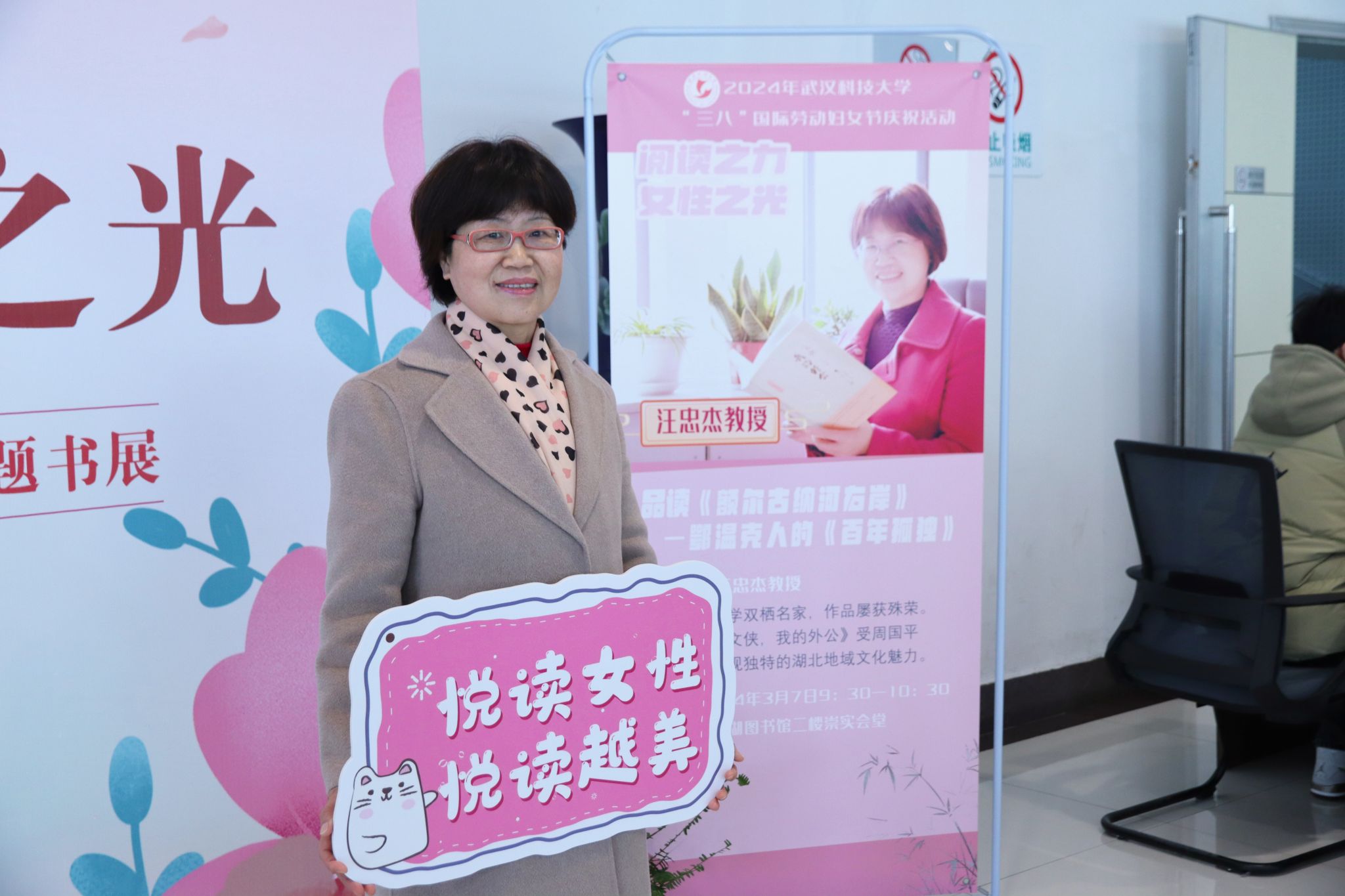 3月7日上午九点,我校在校图书馆崇实会堂开展庆“三八”女性书展专题活动,由汪忠杰带领观众品读《额尔古纳河右岸》-鄂温克人的《百年孤独》,学生朱荣分享《额尔古纳河右岸》跨“阅”学科,读破局限,多名校领导、负责人、女教职工代表与女大学生代表均出席参加,许多同学也来到现场参与互动。
