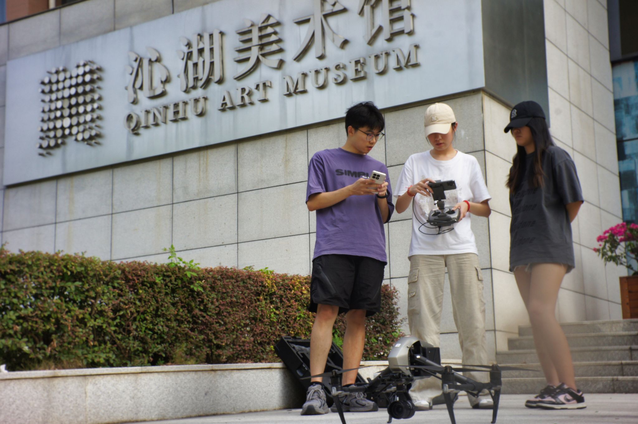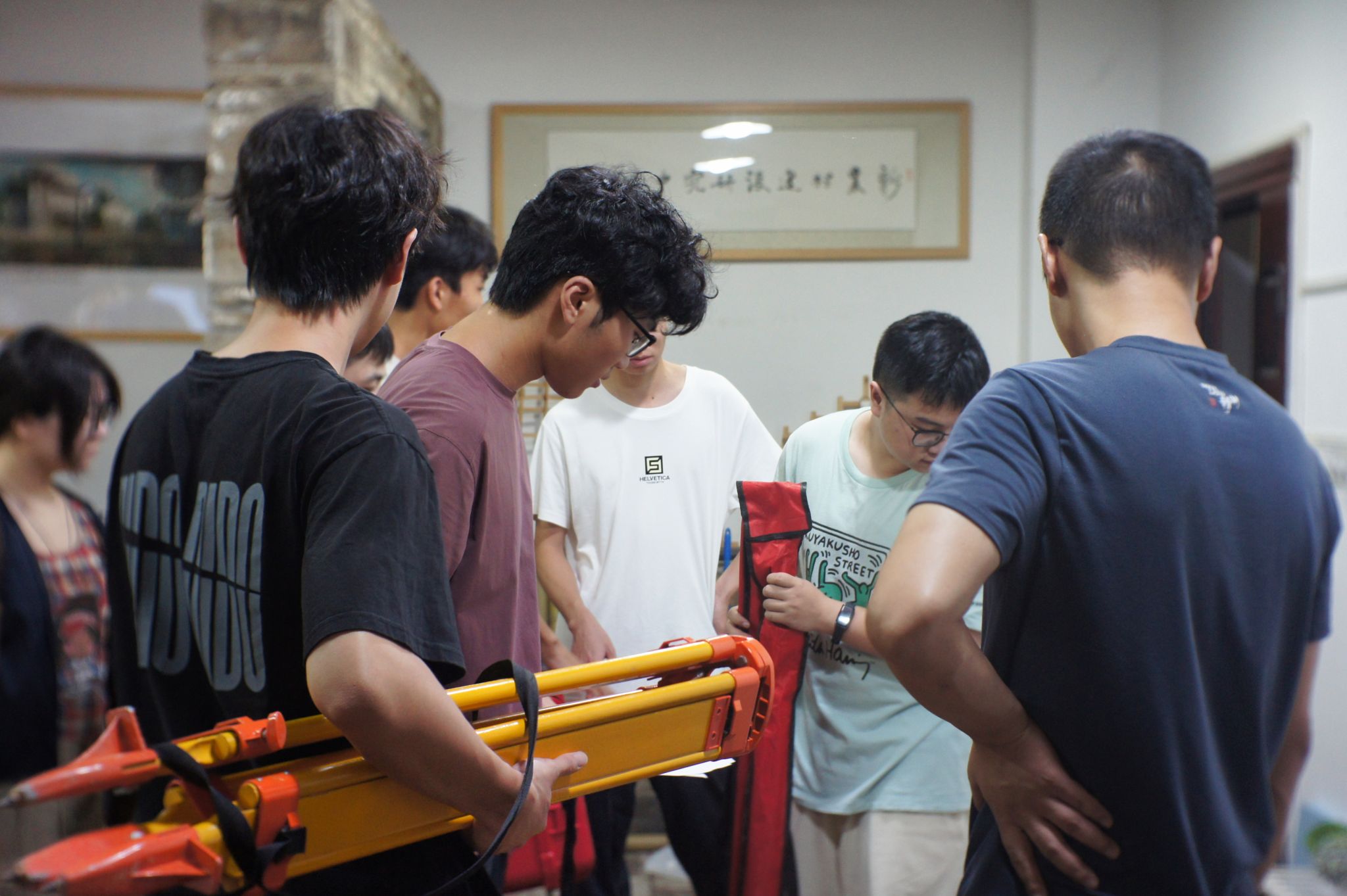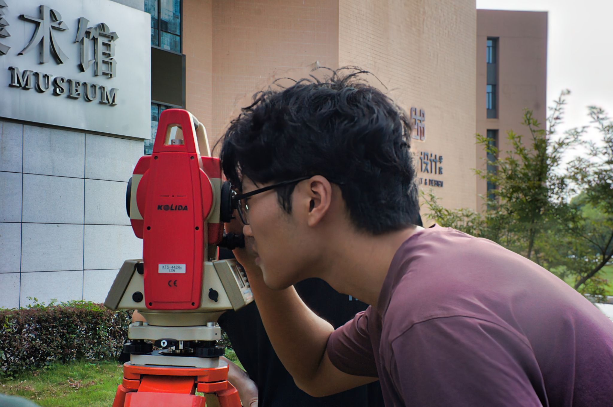 9月5日在教七楼215办公室,罗斌老师对着电脑为参加的学生讲解软件的使用。紧接着前往楼下草坪处讲解全站仪(全站型电子速测仪)和无人机的使用,学生们分为两组进行学习,全站仪由罗斌老师讲解,无人机由研究生李婧维讲解。(王翔宇)