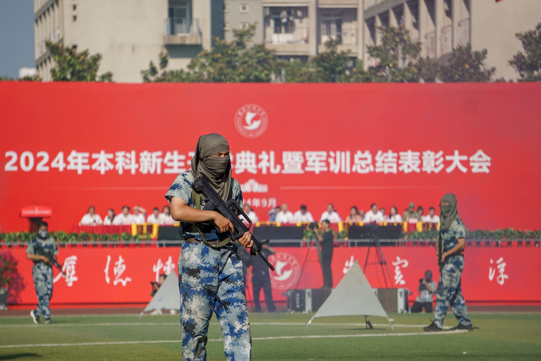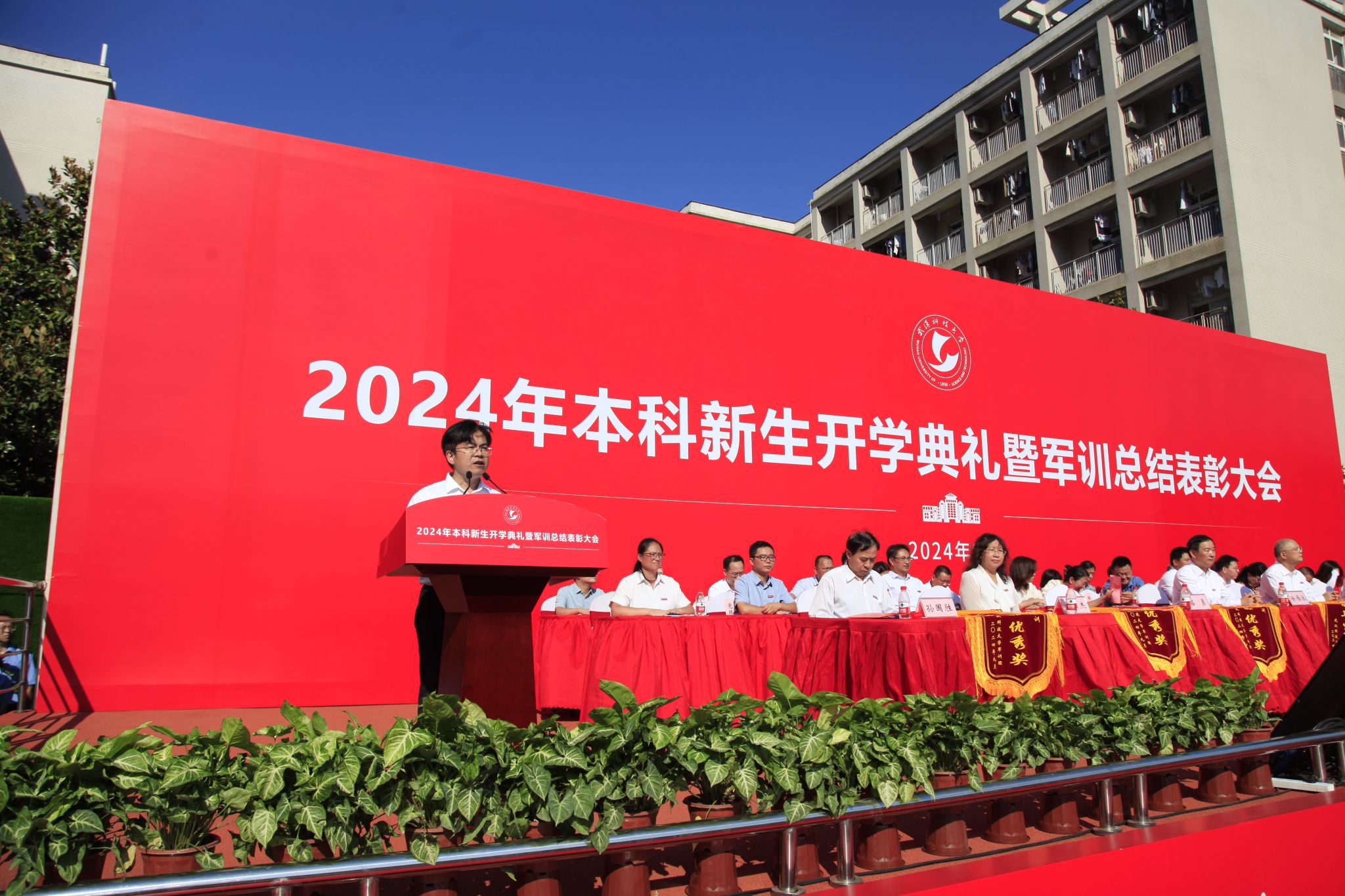 9月29日上午,我校于南苑操场举行2024年本科新生开学典礼暨军训总结表彰大会,现场同学们热情洋溢,情绪高涨。校党委书记徐雁冰,校长倪红卫,党委副书记孙国胜,副校长吕勇、马腾、董丽杰,党委常委刘时新,空军预警学院大队长张力以及学校各职能部门、各学院领导出席本次大会。由党委副书记孙国胜主持大会。