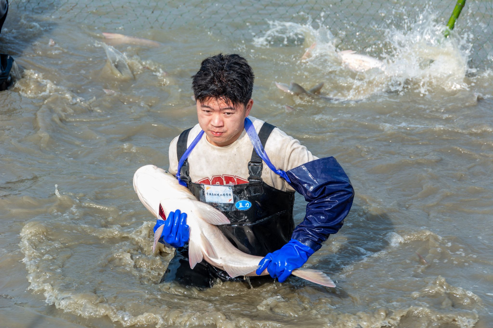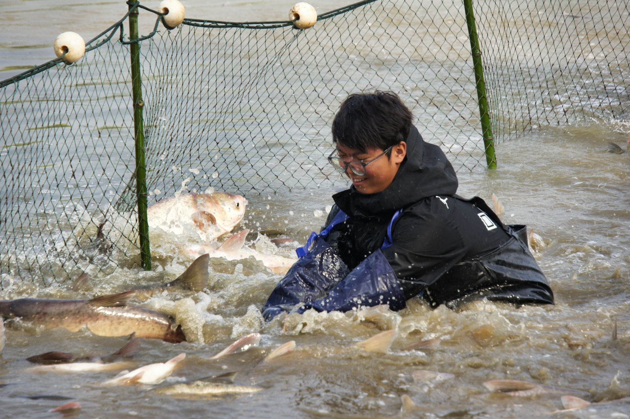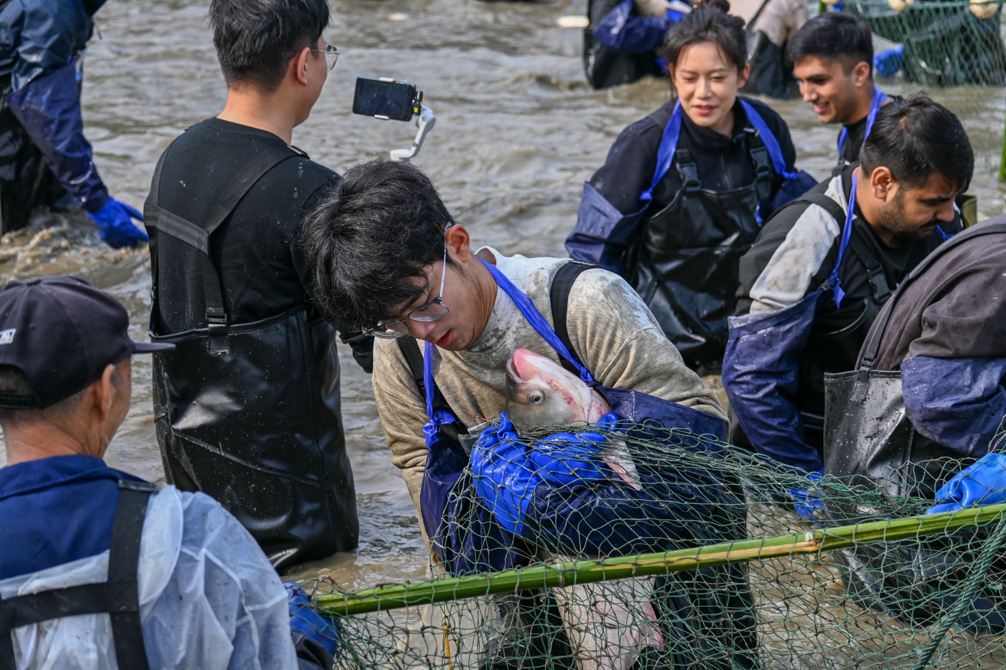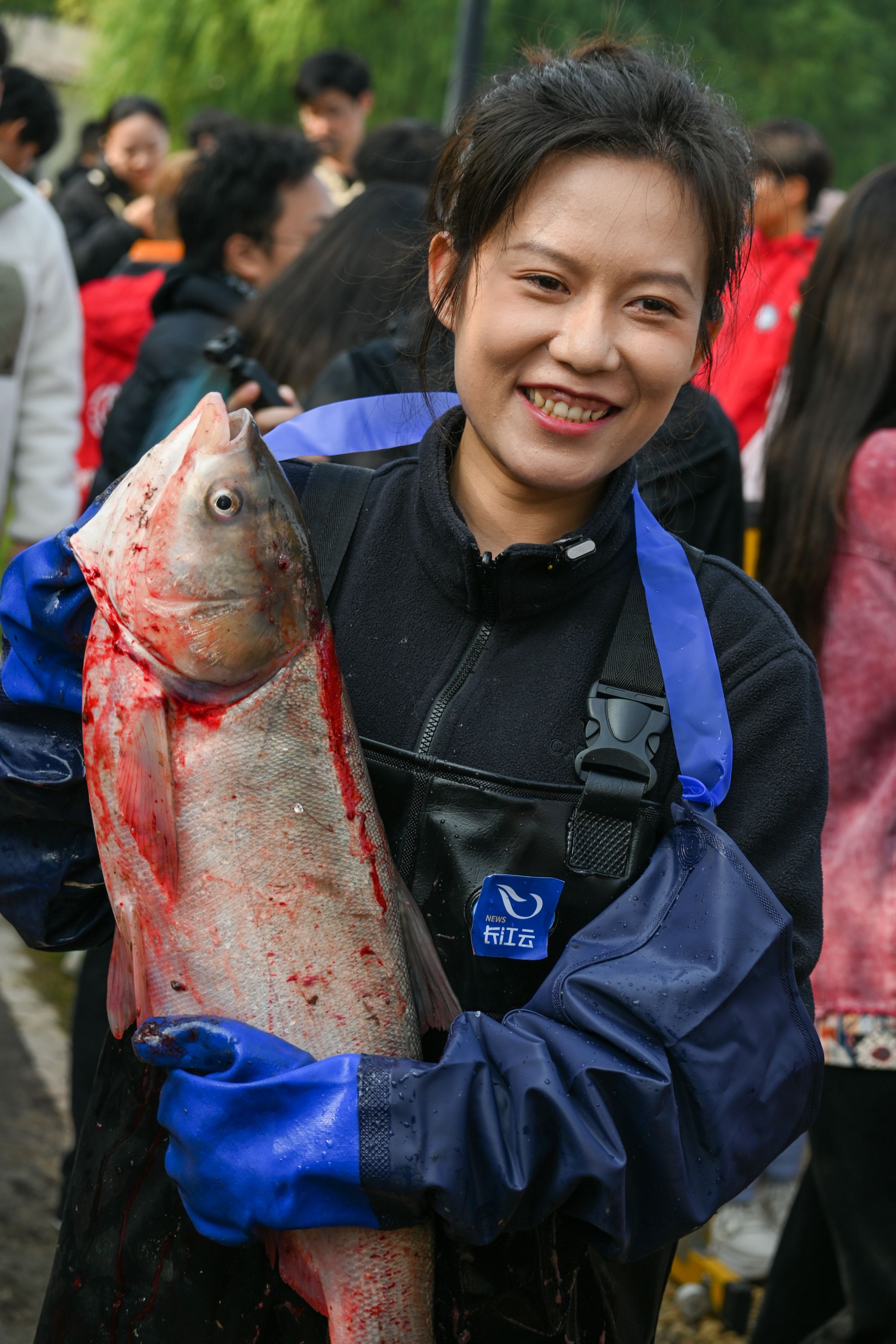 11月21日上午8时,学校近百名中外师生和后勤集团员工身着统一的红色服装,在沁湖边拉开了捕鱼活动的序幕。经过半个多小时的激烈争夺,信息学院徐润收获了一条20.5斤重的大鱼,获得了今年的“捕鱼王”称号。