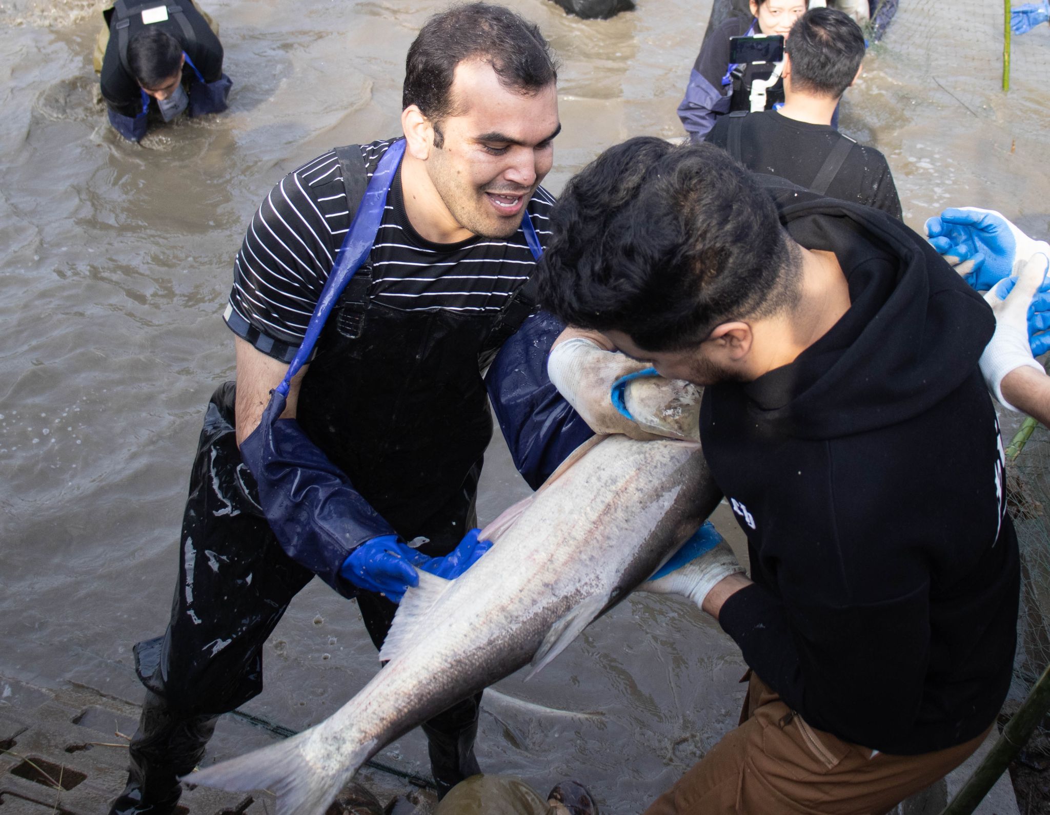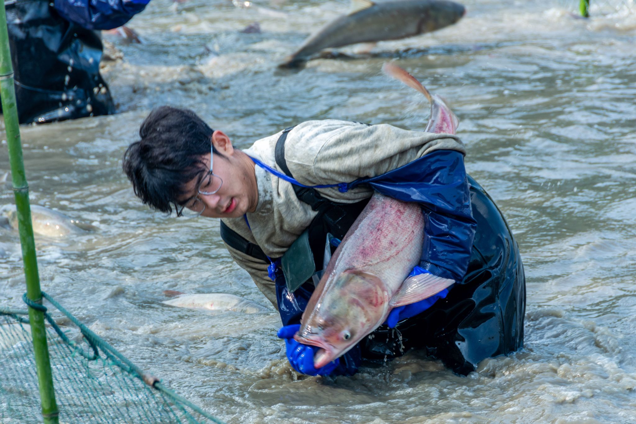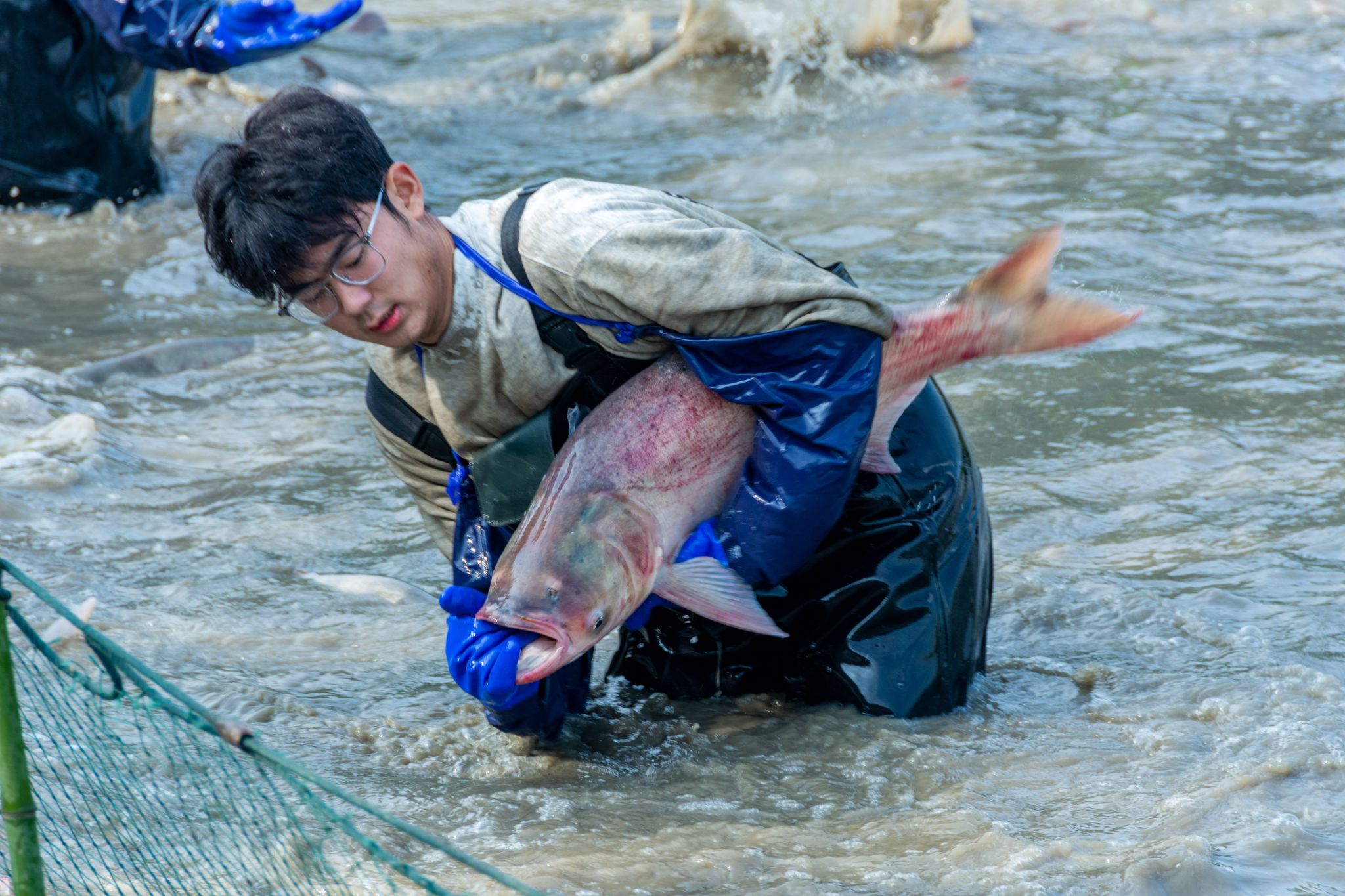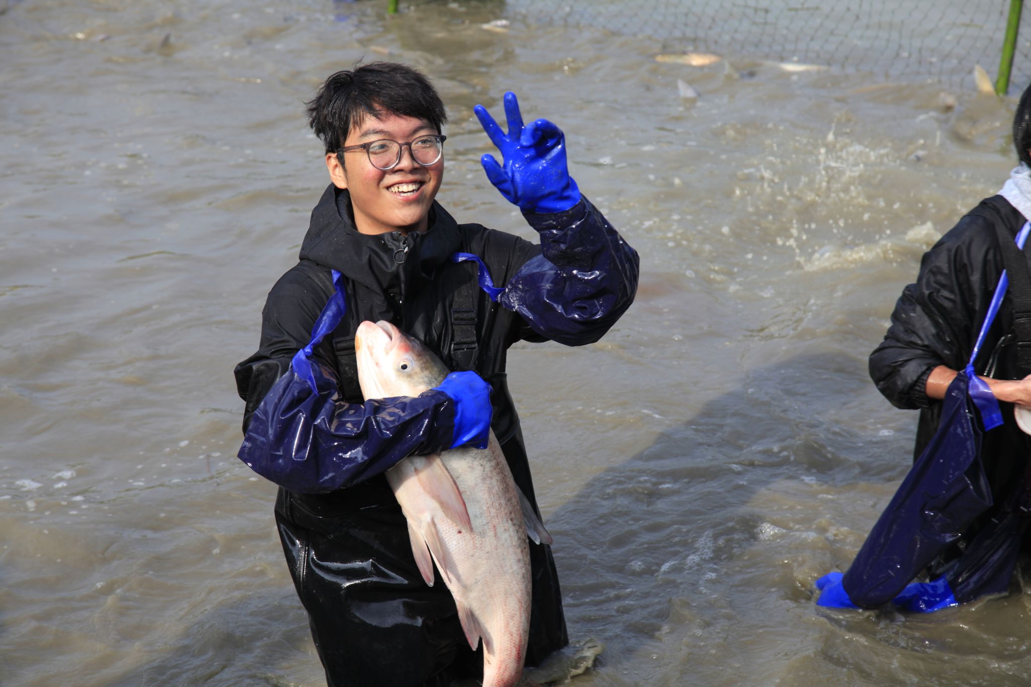 11月21日上午8时,学校近百名中外师生和后勤集团员工身着统一的红色服装,在沁湖边拉开了捕鱼活动的序幕。经过半个多小时的激烈争夺,信息学院徐润收获了一条20.5斤重的大鱼,获得了今年的“捕鱼王”称号。