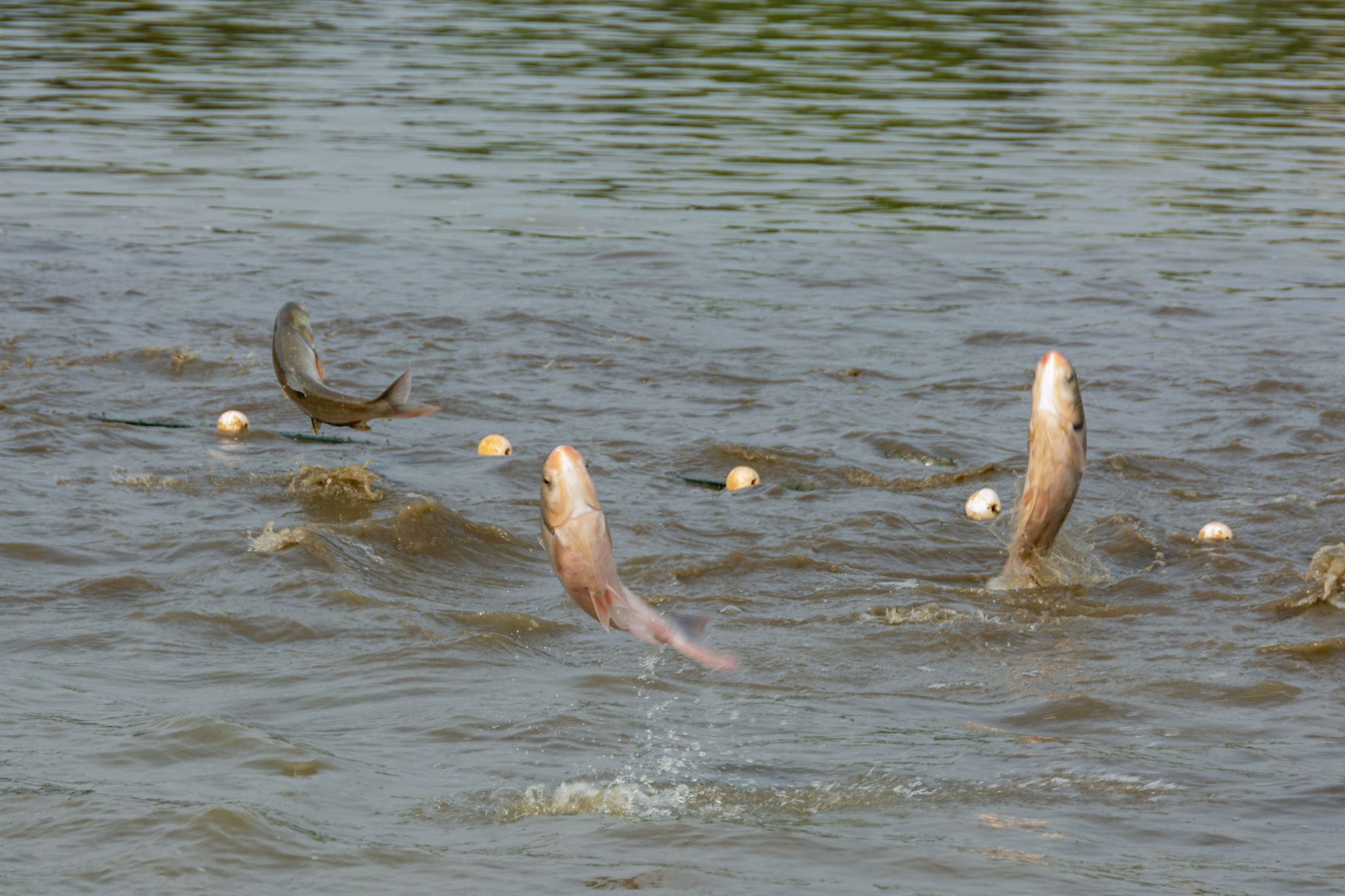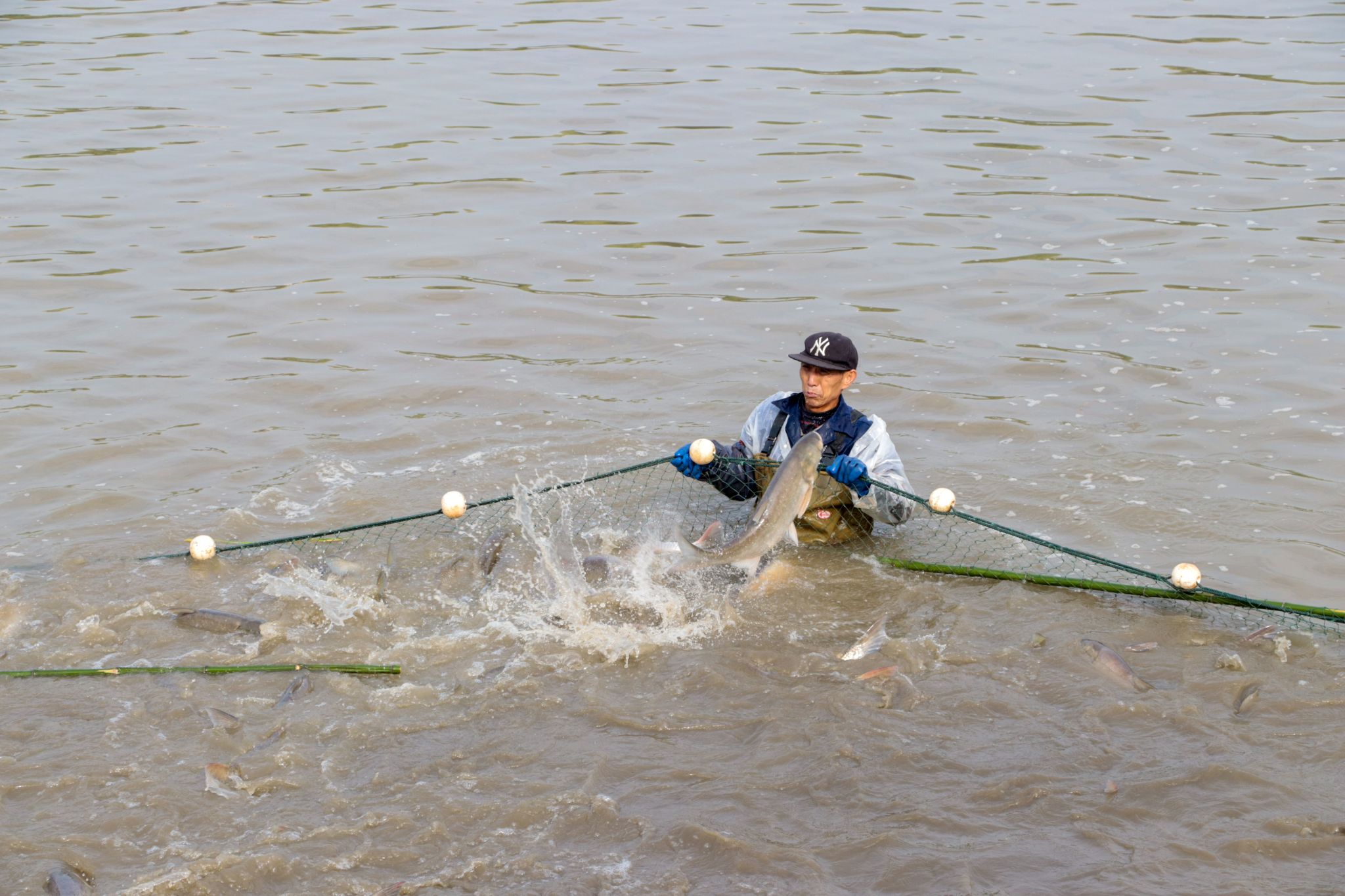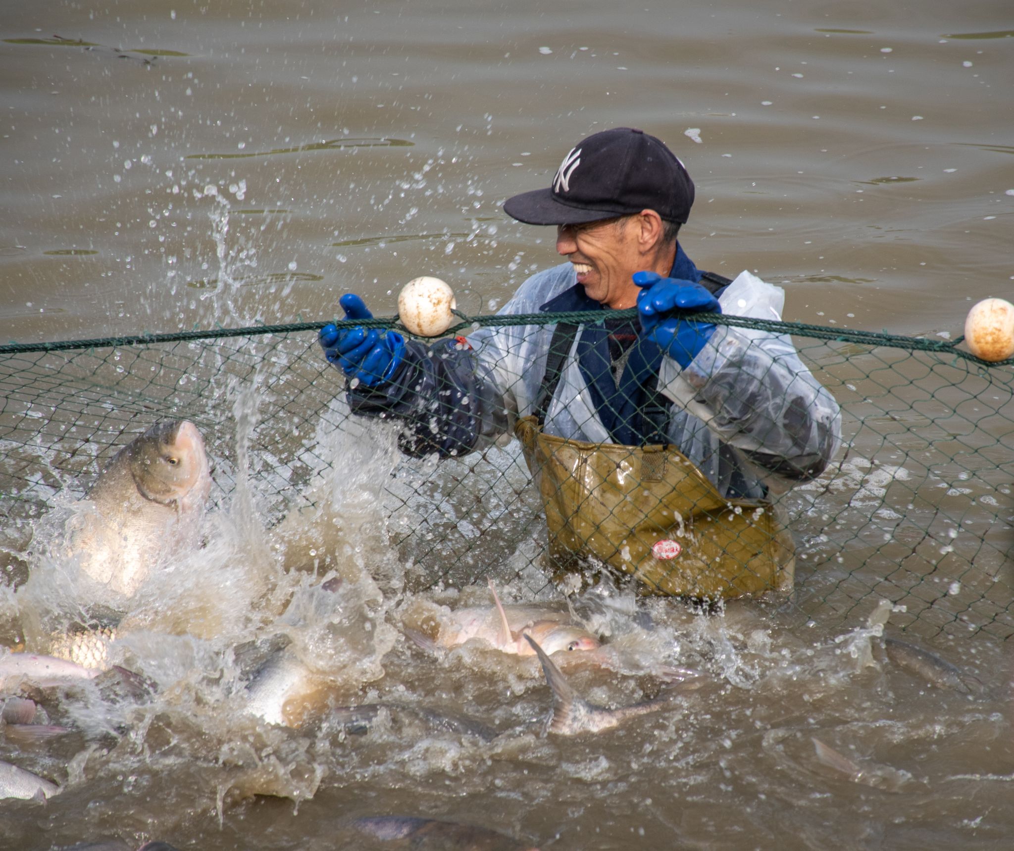 拉鱼后勤爷爷与跃出的鱼特写 陈楷林摄