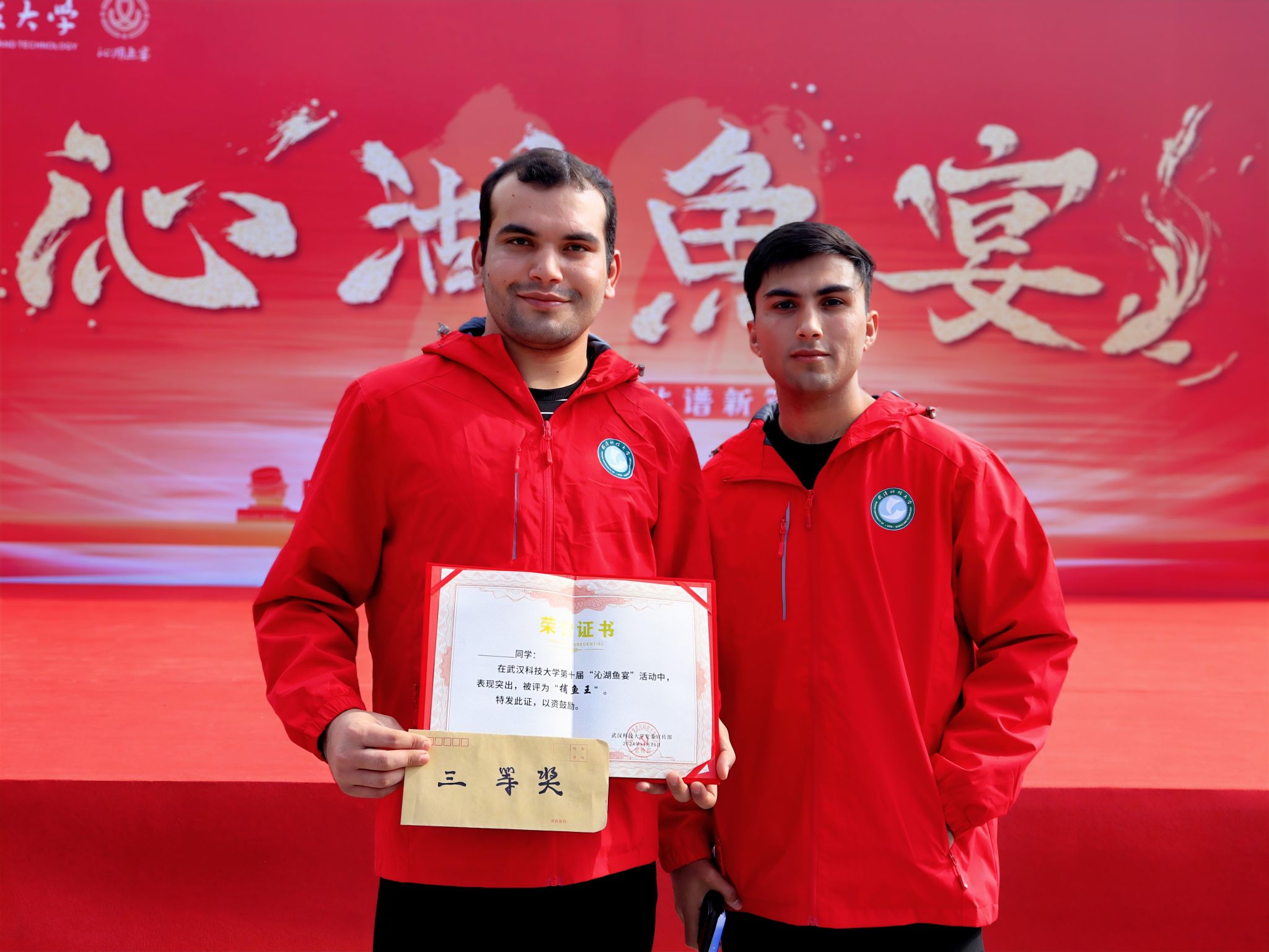 校党委书记徐雁冰和本届鱼王合影 高文帅摄