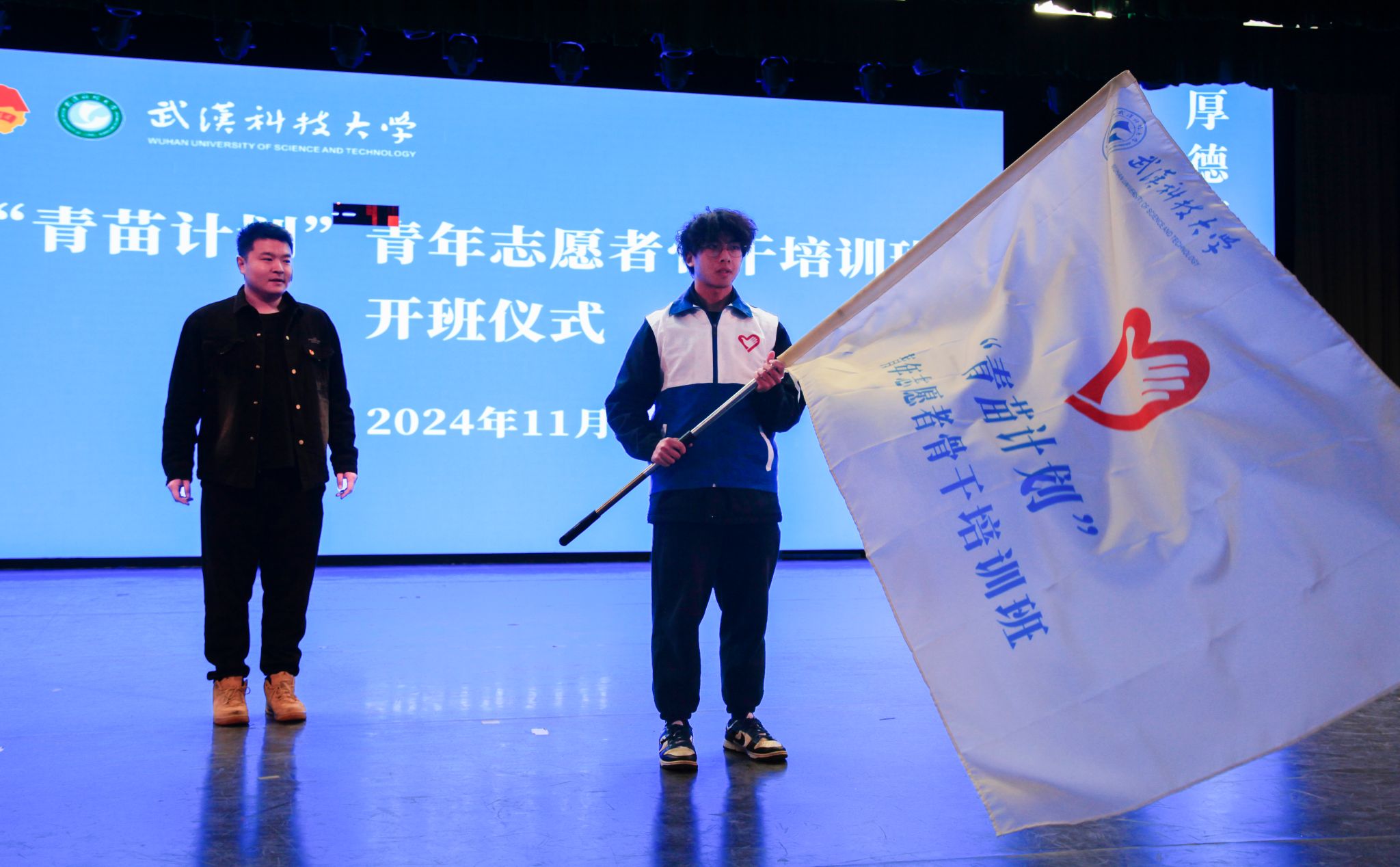 校团委副书记张鸿彬为培训班授旗 吴颖摄