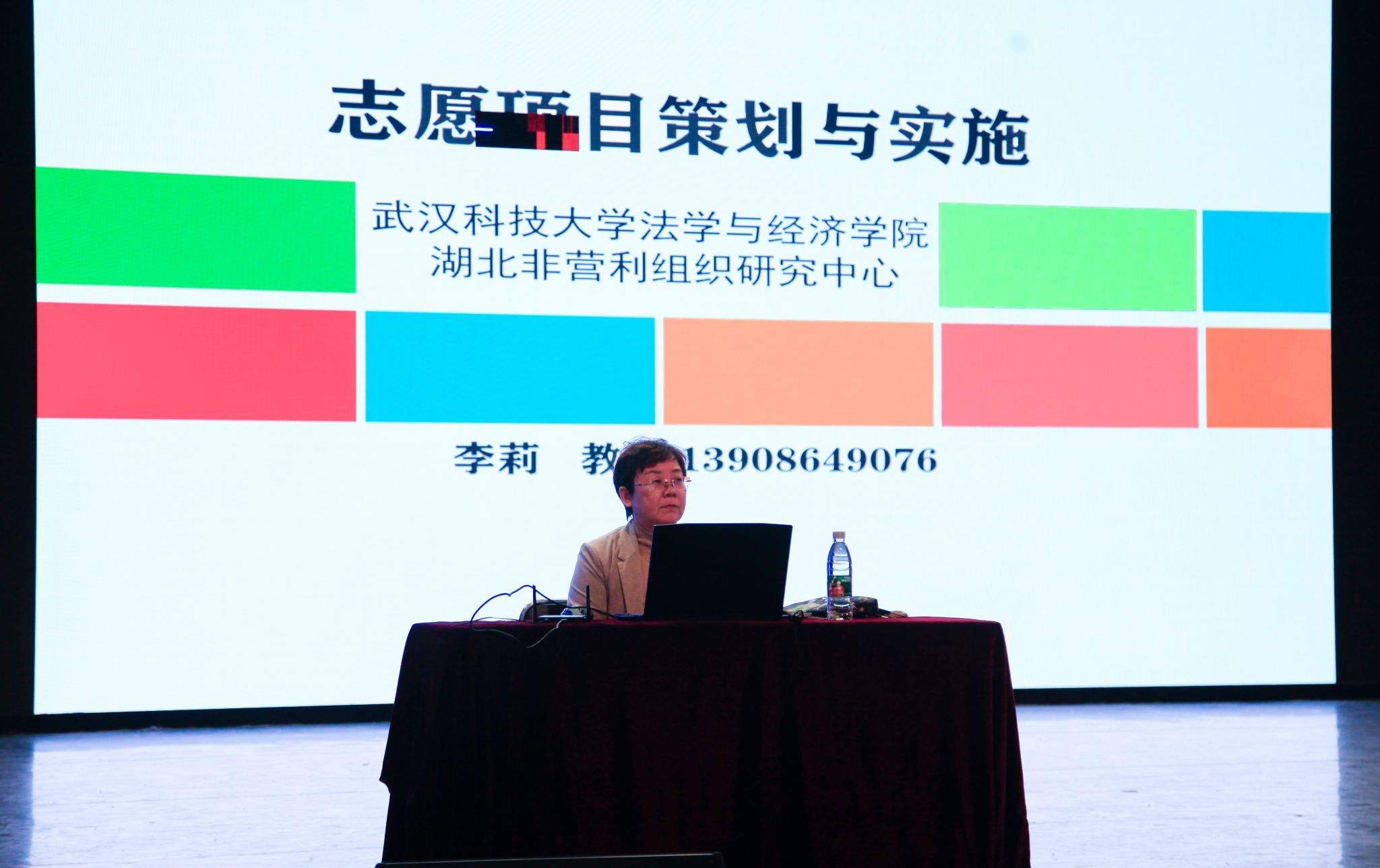湖北非营利组织研究中心主任、武科大法学与经济学院教授李莉对全体青年志愿者培训 吴颖摄