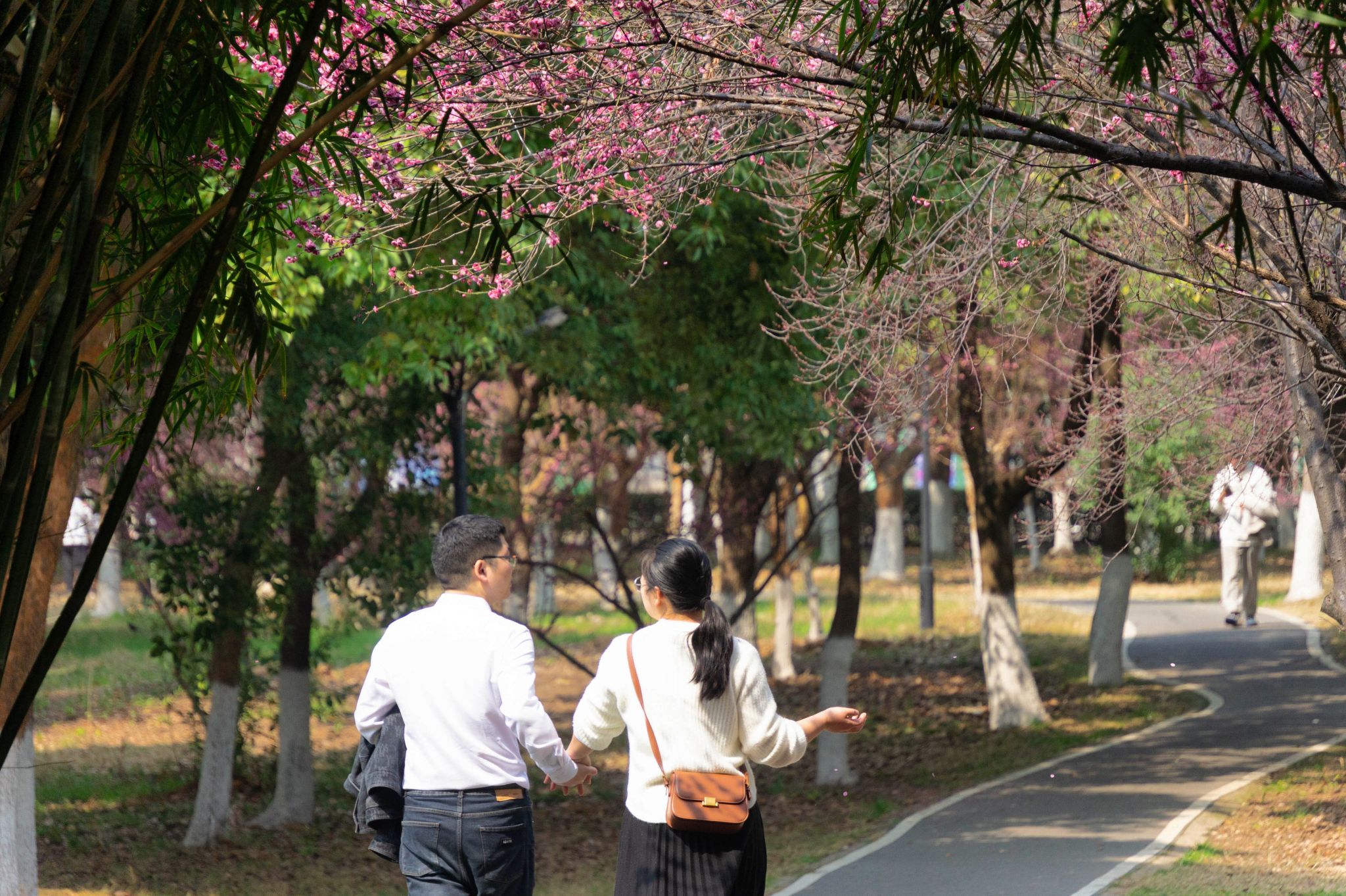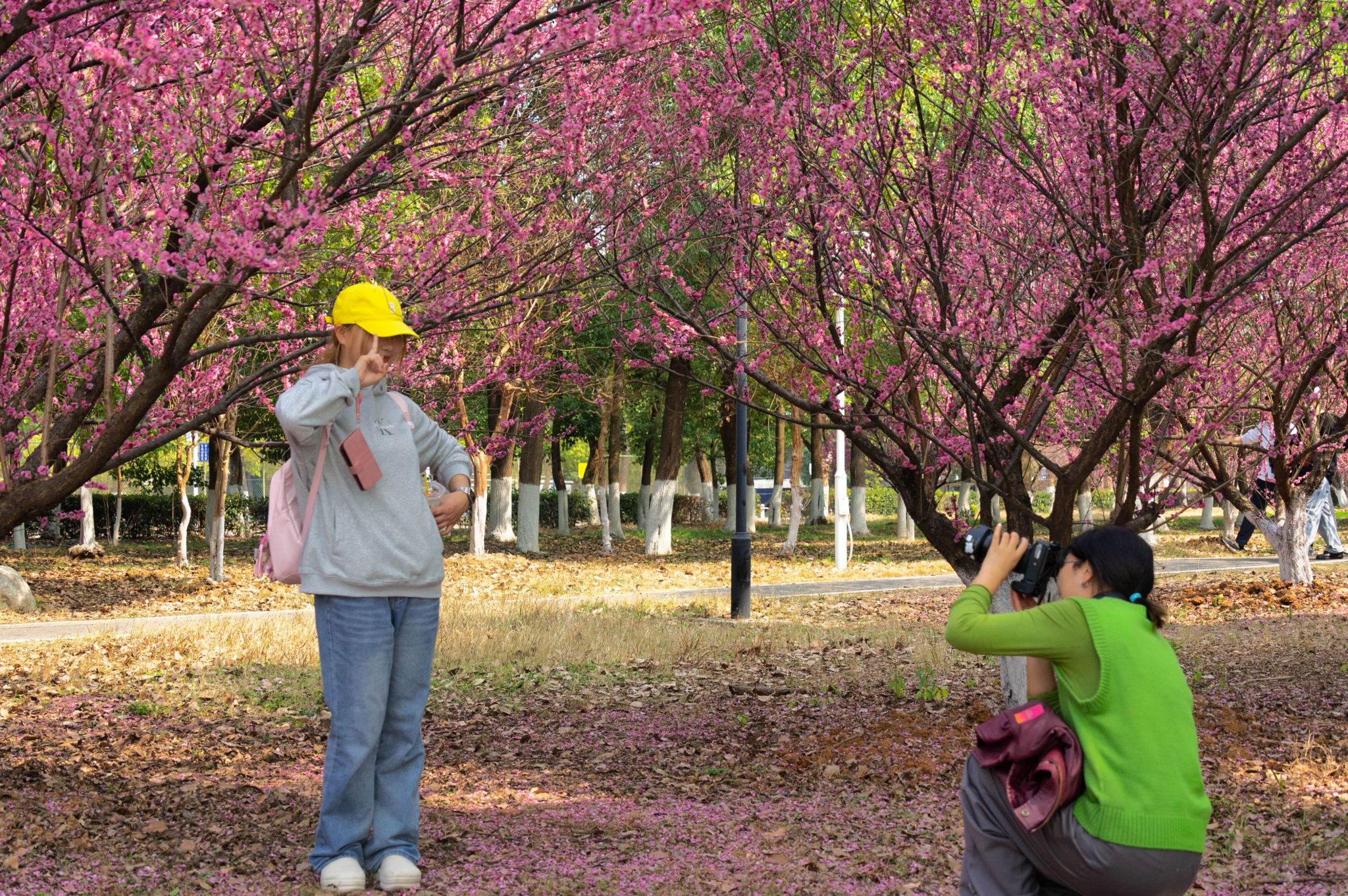 2025年冬末春初,武科大湖区梅花正盛,一片嫣红,引来了许多教工学生前来观梅,学生记者们也记录下了自己镜头下的梅花。