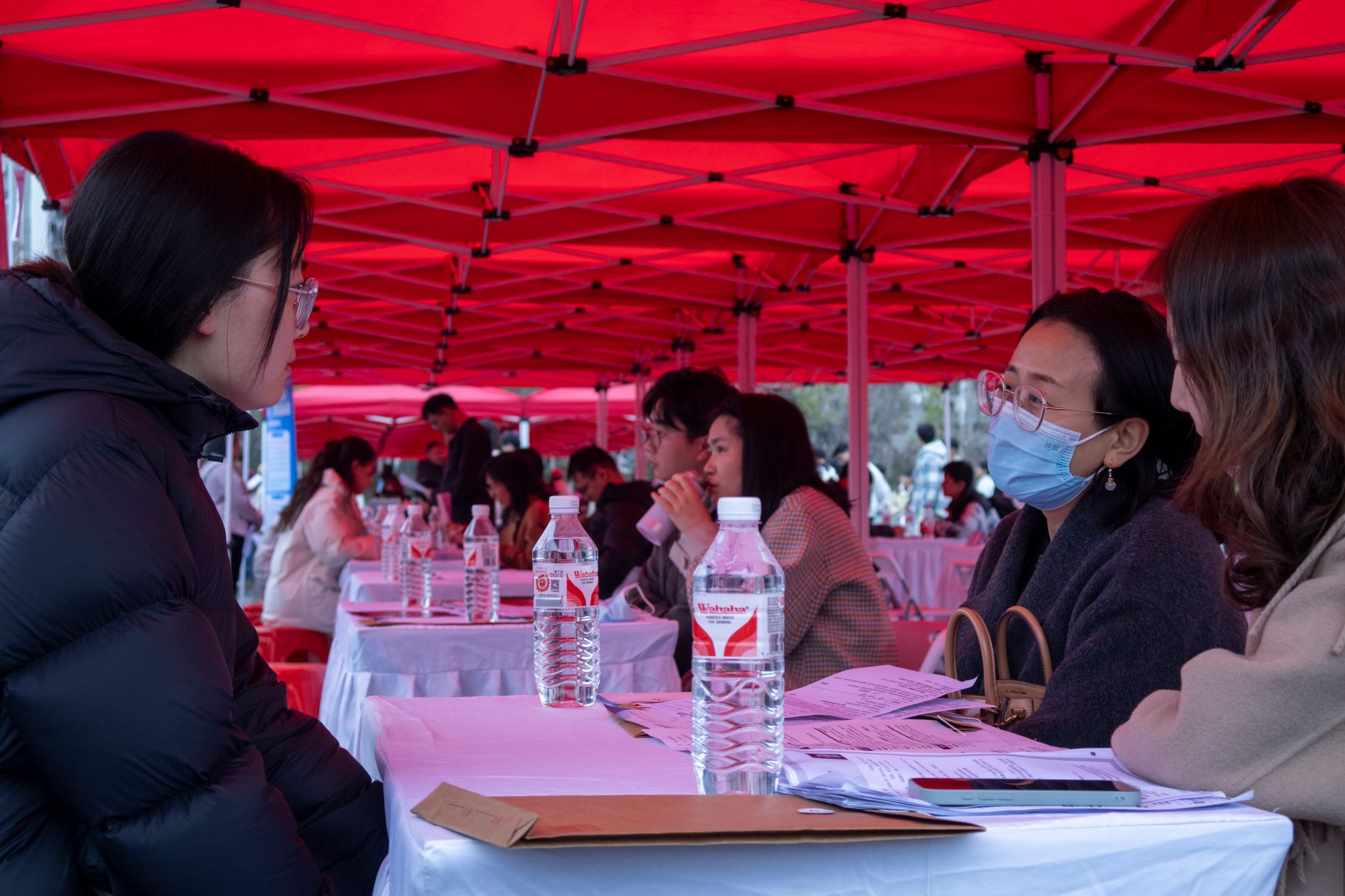3月11日,我校于北园操场举行了“湖北百校联动”高校毕业生双选会,吸引了许多毕业生前来咨询。