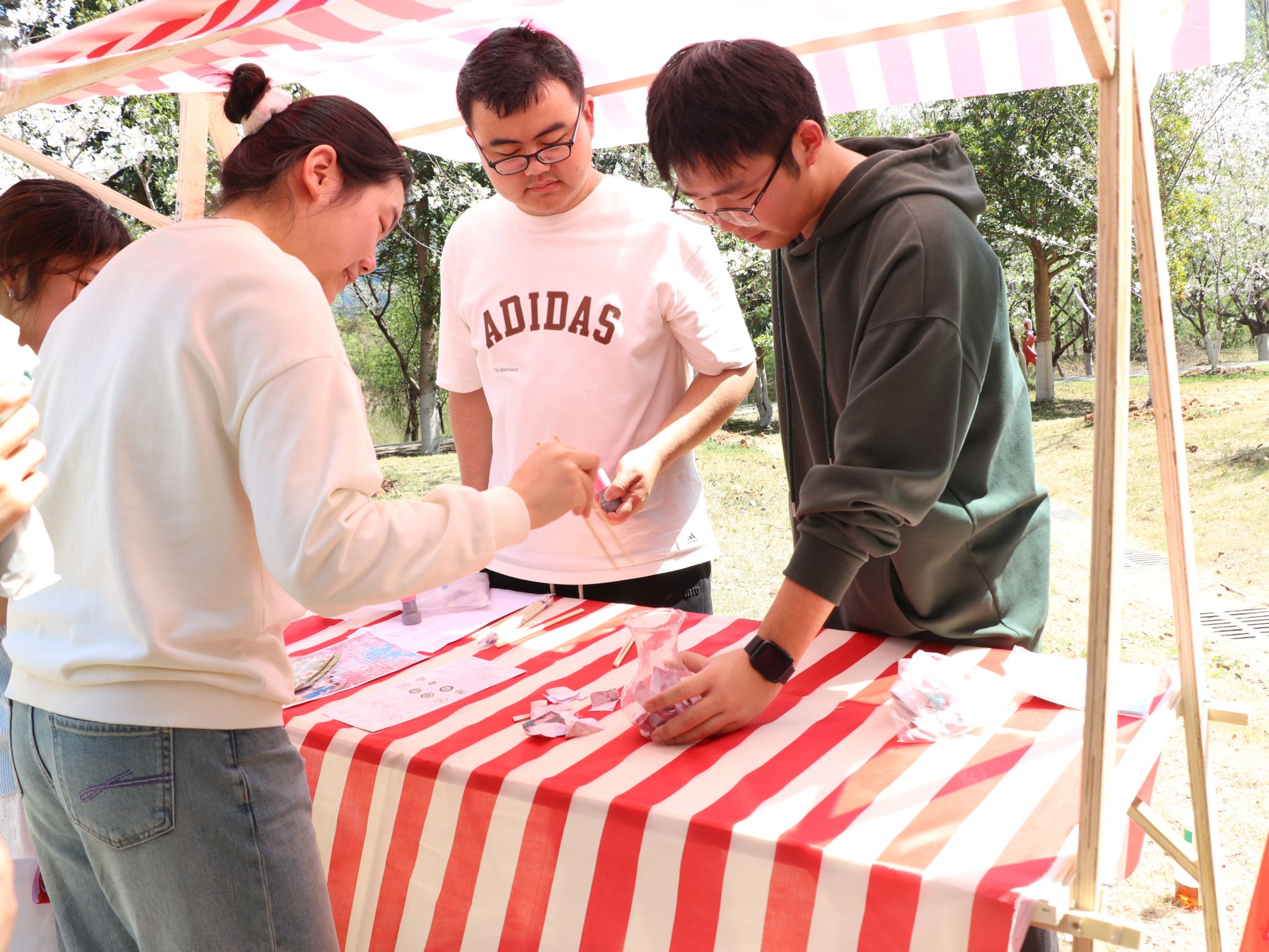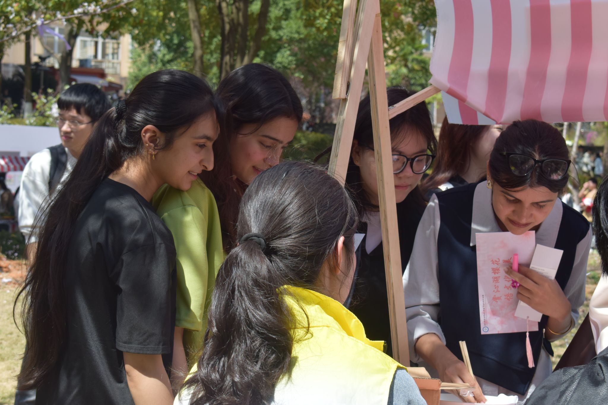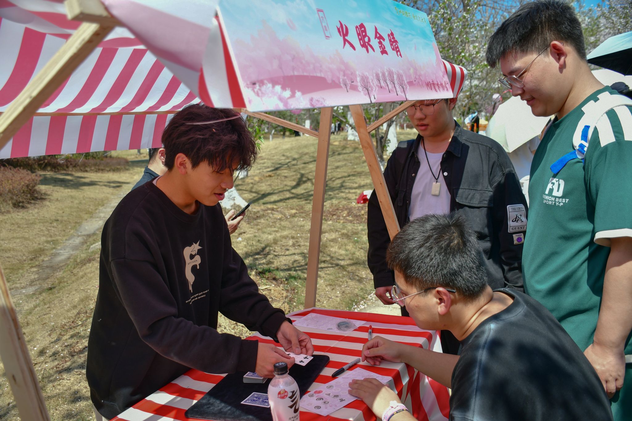 学生体验樱花节游戏 赵飞雪摄