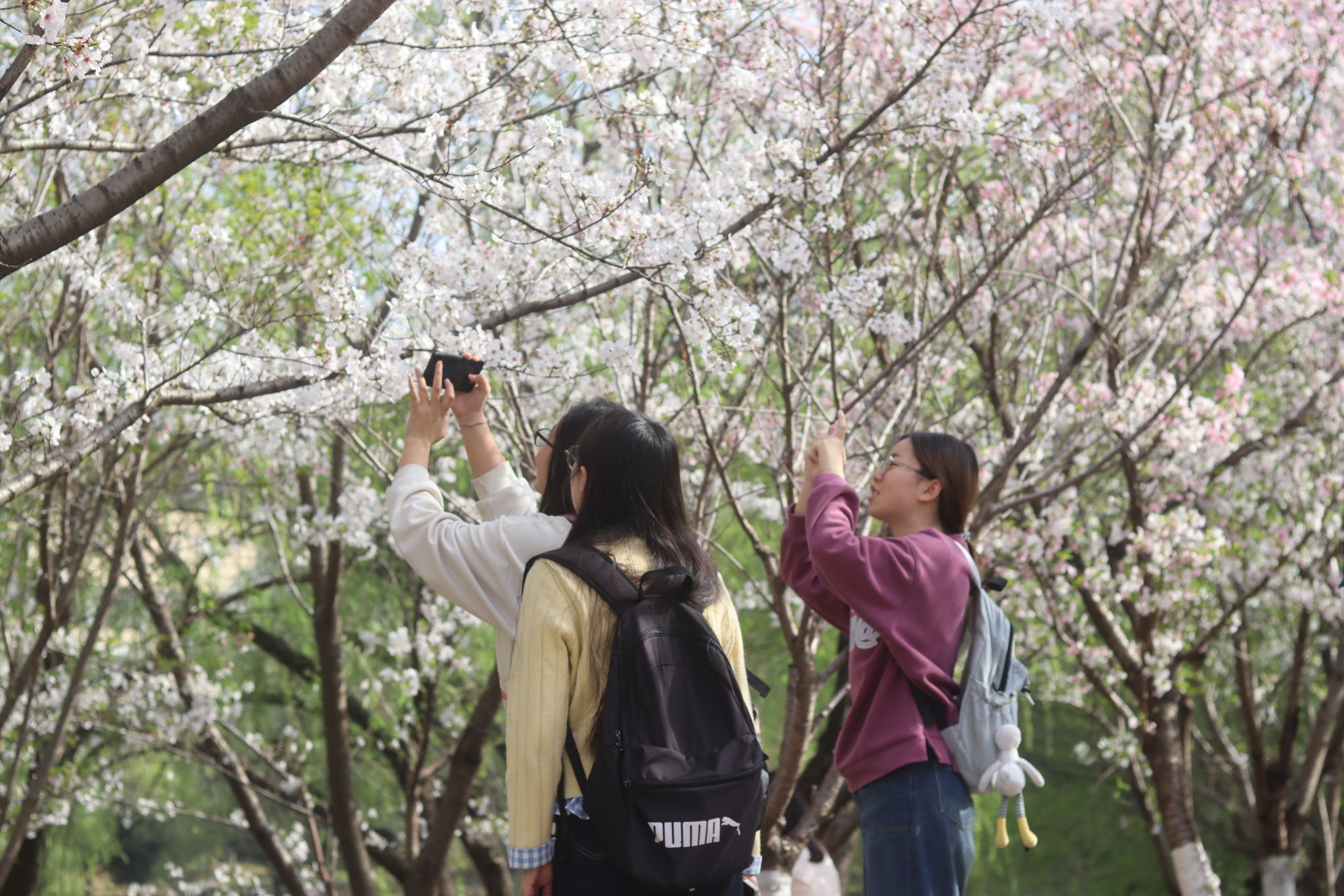 樱花大道上的同学们 吴毅萌摄