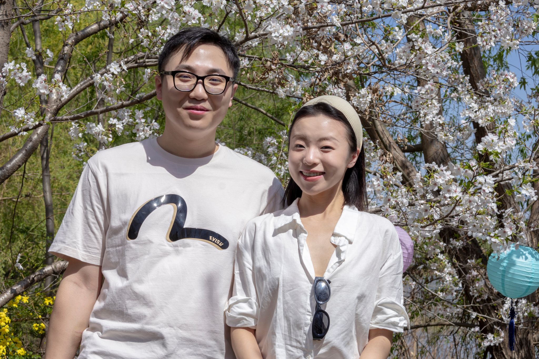 情侣猜樱花树下的谜语 陈楷林摄