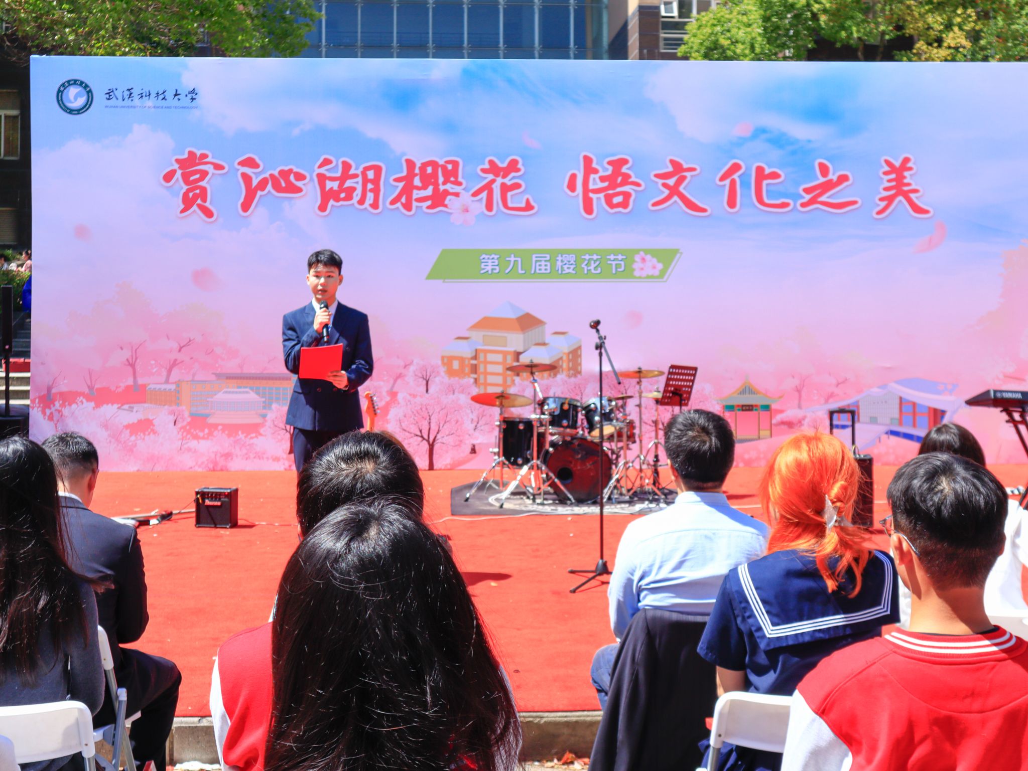 参与樱花节开幕式的学生 王铭浩摄